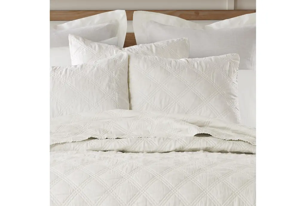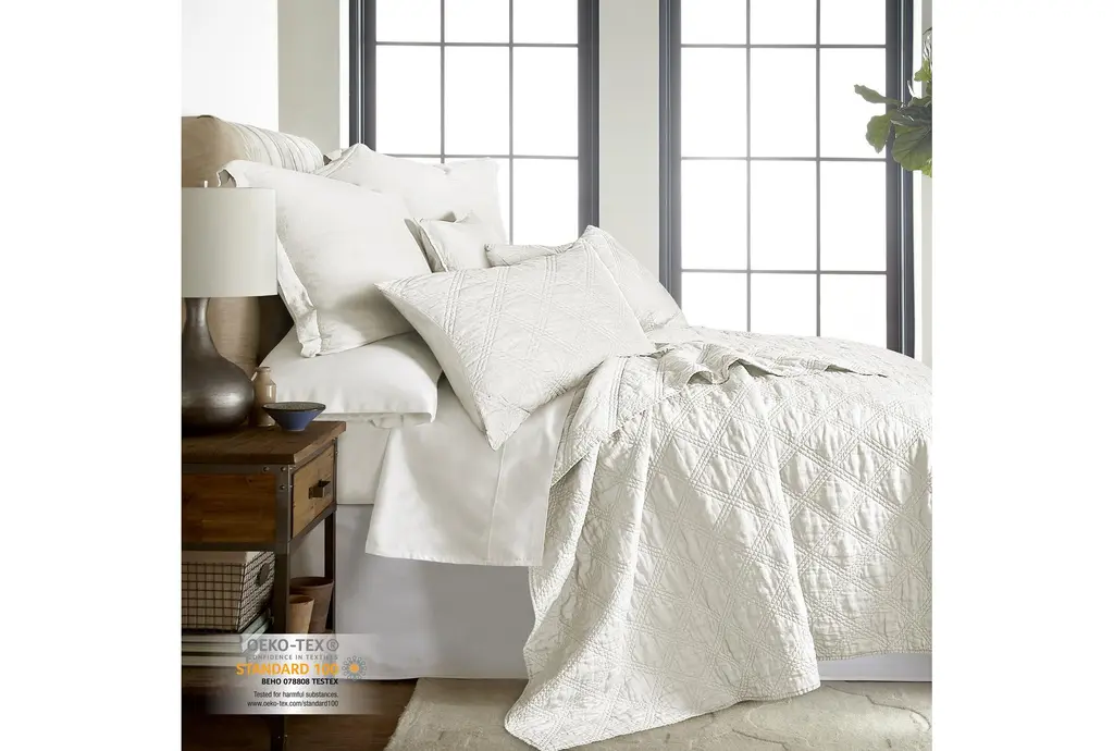 Standard Sham-Cream Quilted Washed Natural Ivory Linen | Quilts | Machine Washable