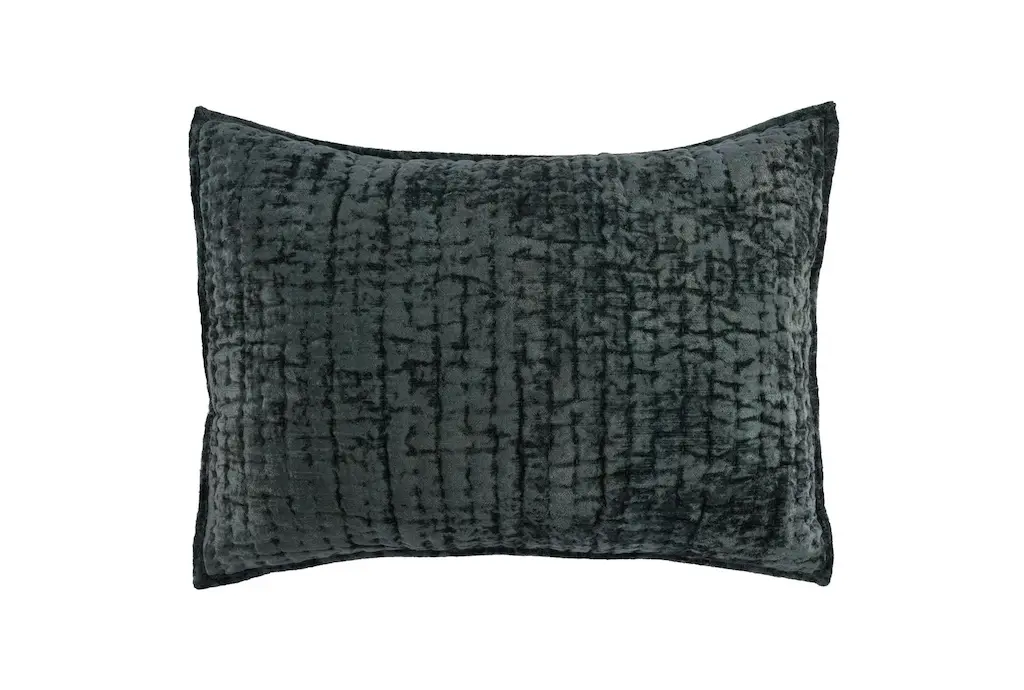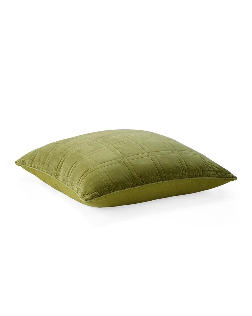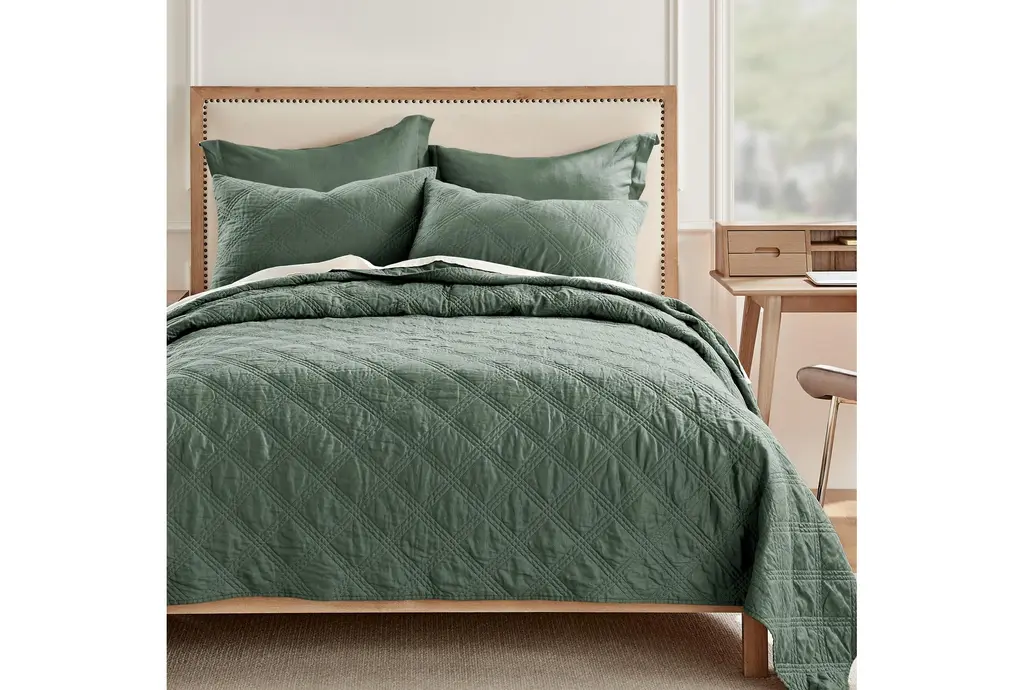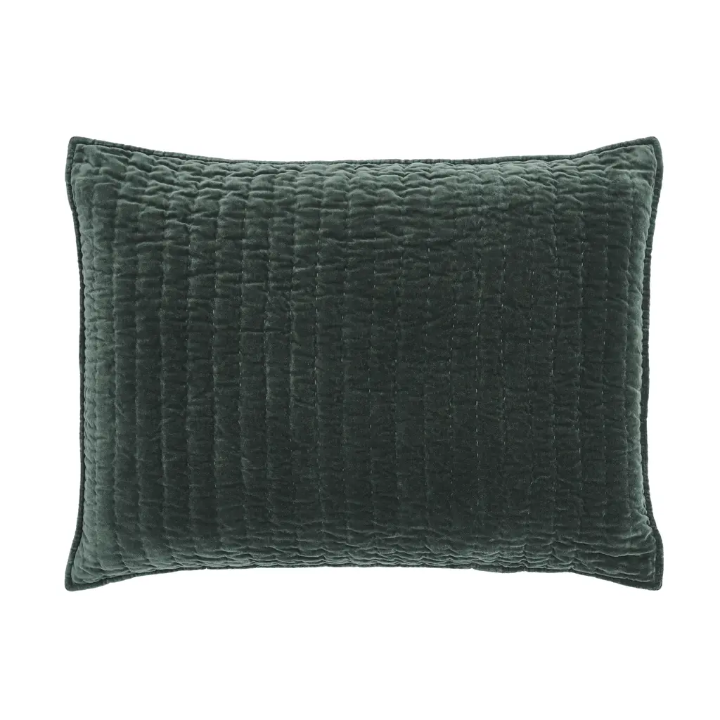 Standard Sham-Forest Green Quilted Washed Linen | Quilts | Machine Washable