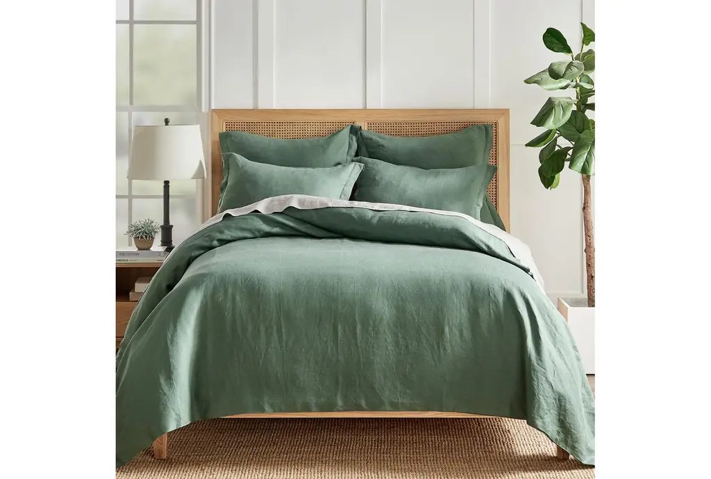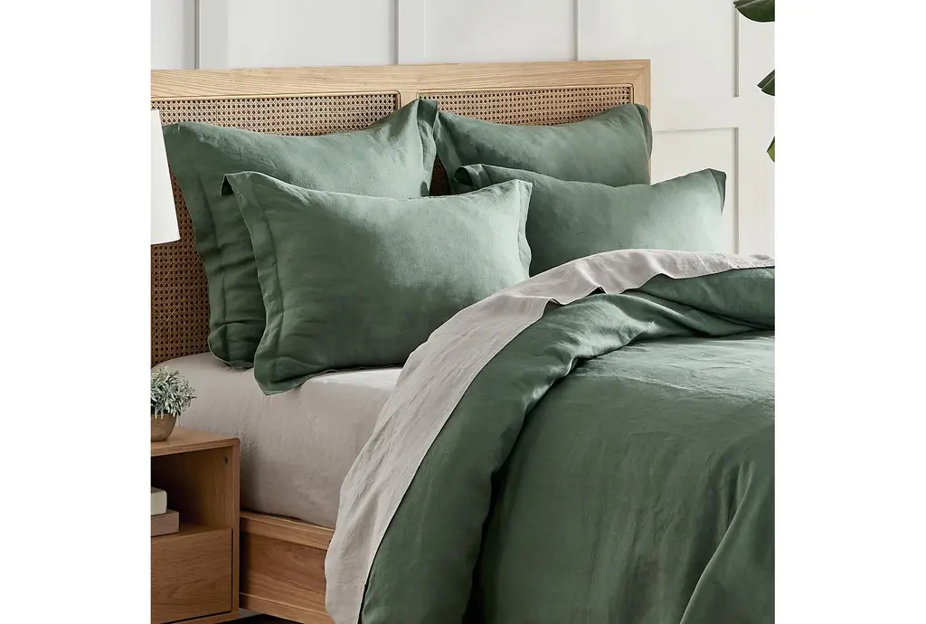 Standard Sham Forest Green Washed Linen | Machine Washable