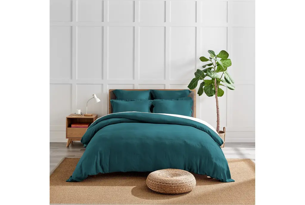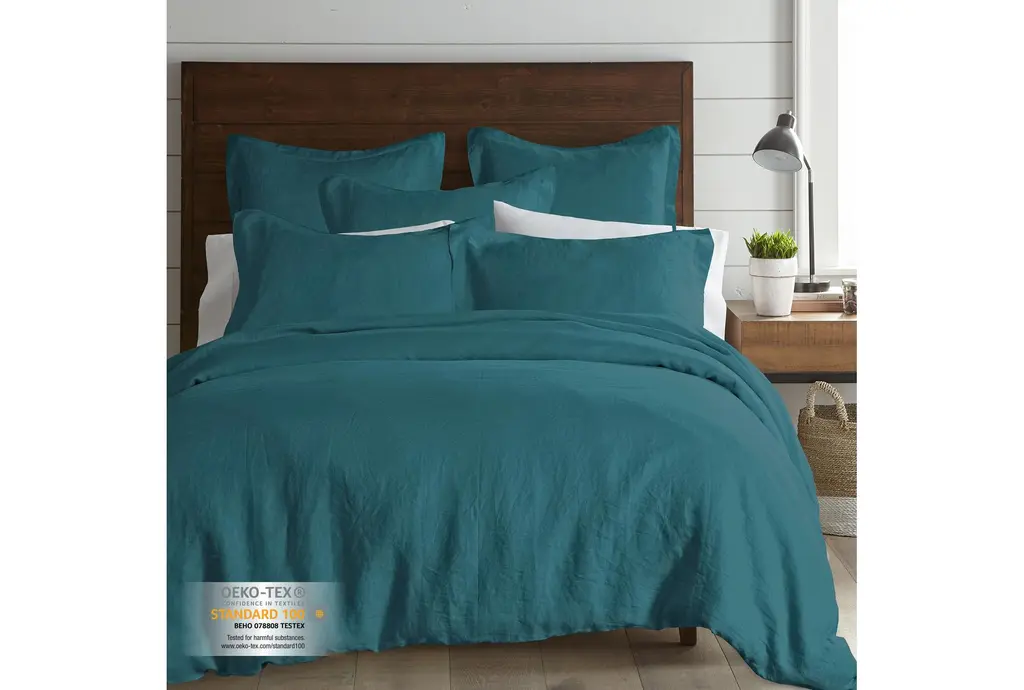 Elevate your bedding ensemble with the Standard Sham in Teal Blue. Crafted from 100% linen, this sham combines the rich gem tones of teal blue with the soft, breathable texture of cotton. Perfect for adding a touch of autumn color to your bedroom, this sham offers both style and comfort in a minimalist design.
