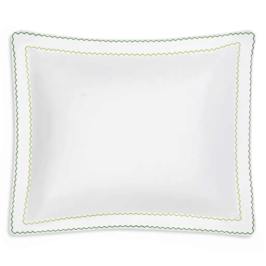 Stella from Matouk is a stylish embroidered collection featuring three lines in tonal hues curved across the flange of crisp Milano percale sheeting. It has an Art-Deco feel that's artistically inspired, and its range of color combinations is designed to delight the senses.