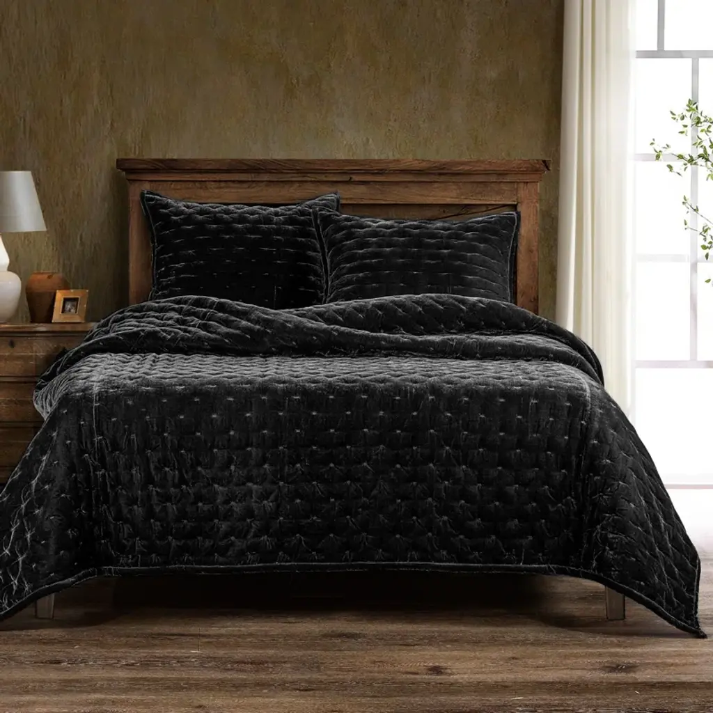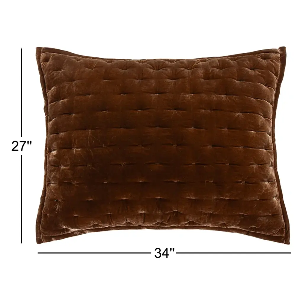 Stella Solid Quilted Faux Silk Velvet Romantic Western Decorative Pillow Sham