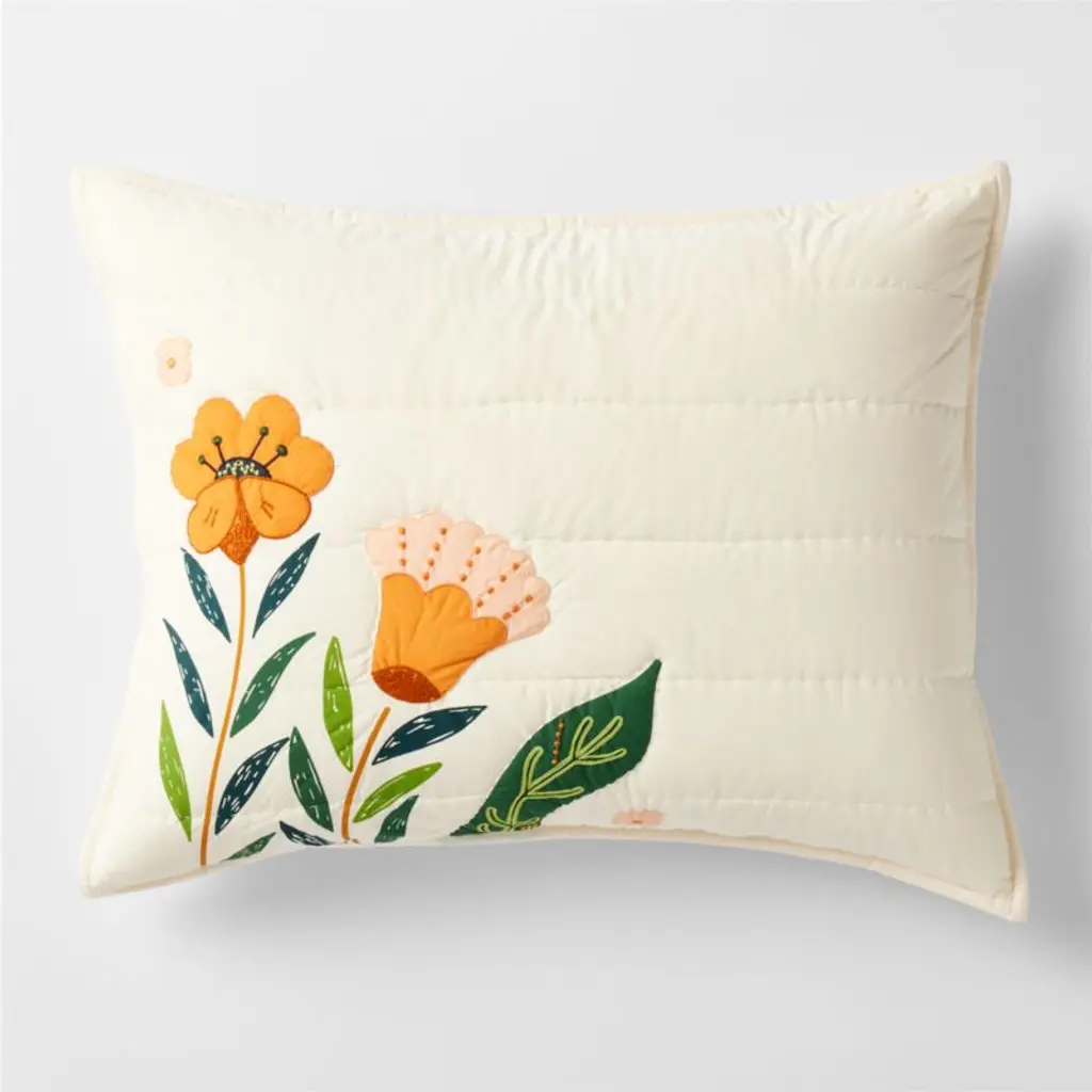 Add an extra layer of style and comfort to your bedroom retreat with the Stillwater Pillow Sham. With a weight that will keep you warm and cozy, the bold color blocking and symmetry of these shams pays homage to traditional appliqué, while its mirrored floral motif makes it easy to style in any direction.