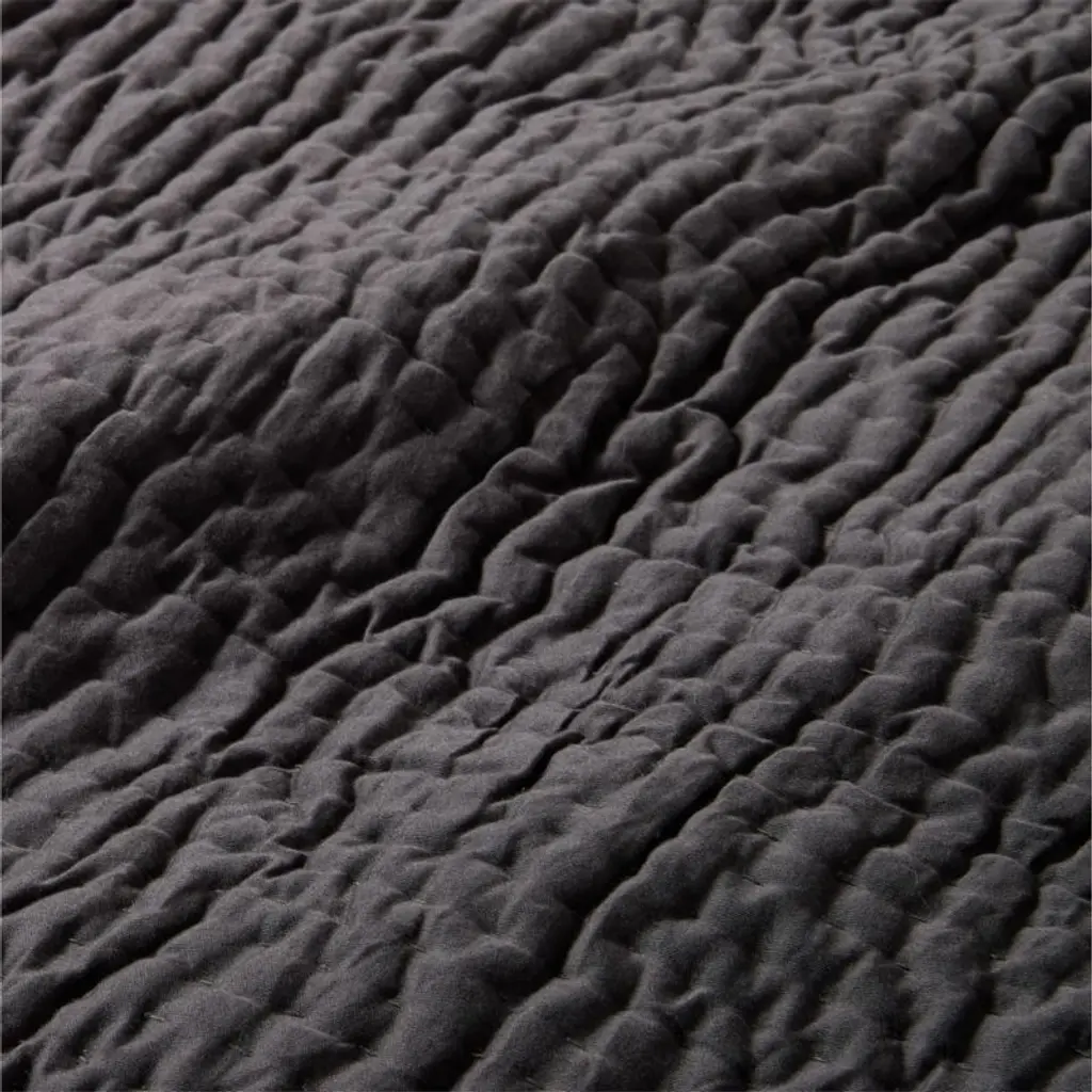 Stitched Organic Cotton Sateen Charcoal Grey King Pillow Shams Set Of 2