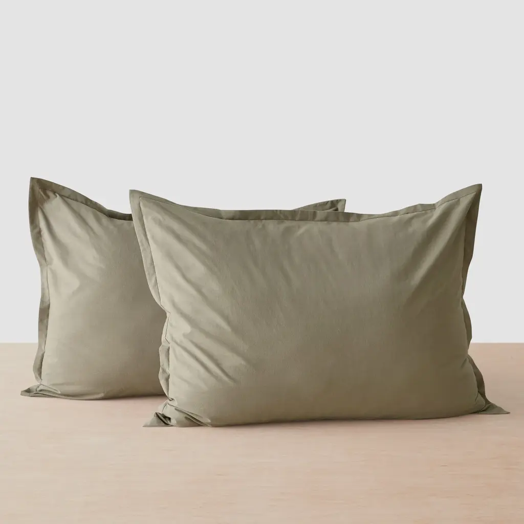 The perfect upgrade for the warmer months, these breathable percale pillow shams are an easy choice. Meet the shams that your pillows dream about. Blending that relaxed linen look with the smooth, crisp feel of cotton, these percale shams are a soft, effortless addition to your space. Mix and match your favorite earthy tones to create a curated assortment of pillows or style as a minimal everyday set. Loomed at a fair trade mill in Bangalore, India, this percale bedding is crafted from 100% organic, long-staple cotton. Sourcing their materials from local family farms, this workshop holds every sheet to the highest standards, stonewashing each piece for an effortlessly soft finish. Each piece is Oeko-Tex® and Global Organic Textile Standard (GOTS) certified. All made in a fair trade environment. Pair with our fan-favorite cotton gauze layering pieces. Want to see our bedding for yourself? Go on and test out our COTTON PERCALE FABRIC SWATCHES.