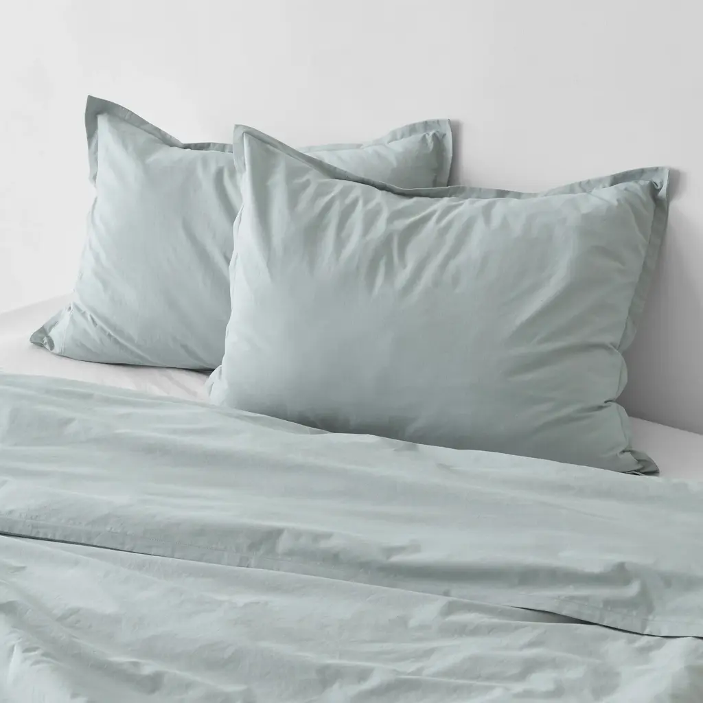 Stonewashed Organic Cotton Percale Shams - Seaglass / King Set