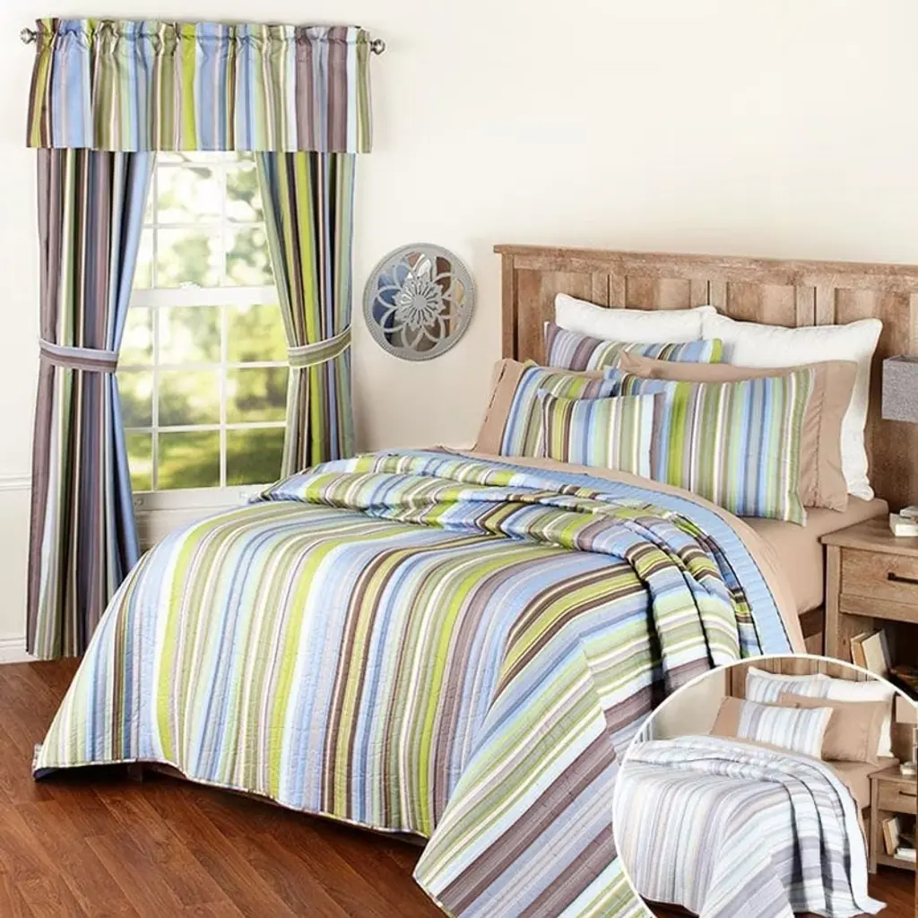 Finish the look of your Aidan Stripe bedding with this blue striped sham. It features a striped design in a range of complementary colors. Stuff this sham with a bed pillow and prop it against the headboard to create a warm and inviting look. The bold colors make a pleasant contrast to pastel home décor! 26"W x 20"L. Polyester. Machine care.