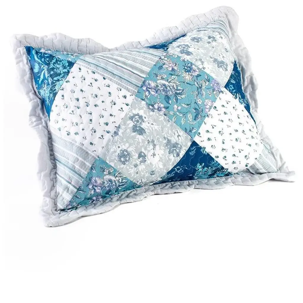 Enhance the farmhouse aesthetic of any bedroom in your home with this floral patchwork country pillow sham. Featuring a blue hue, the patchwork-look of this standard-size pillow sham adds a fun country accent with ease. It's machine washable for ease of care and simple cleaning. Cotton and polyester. Machine wash and line dry. 26"W x 20"L
