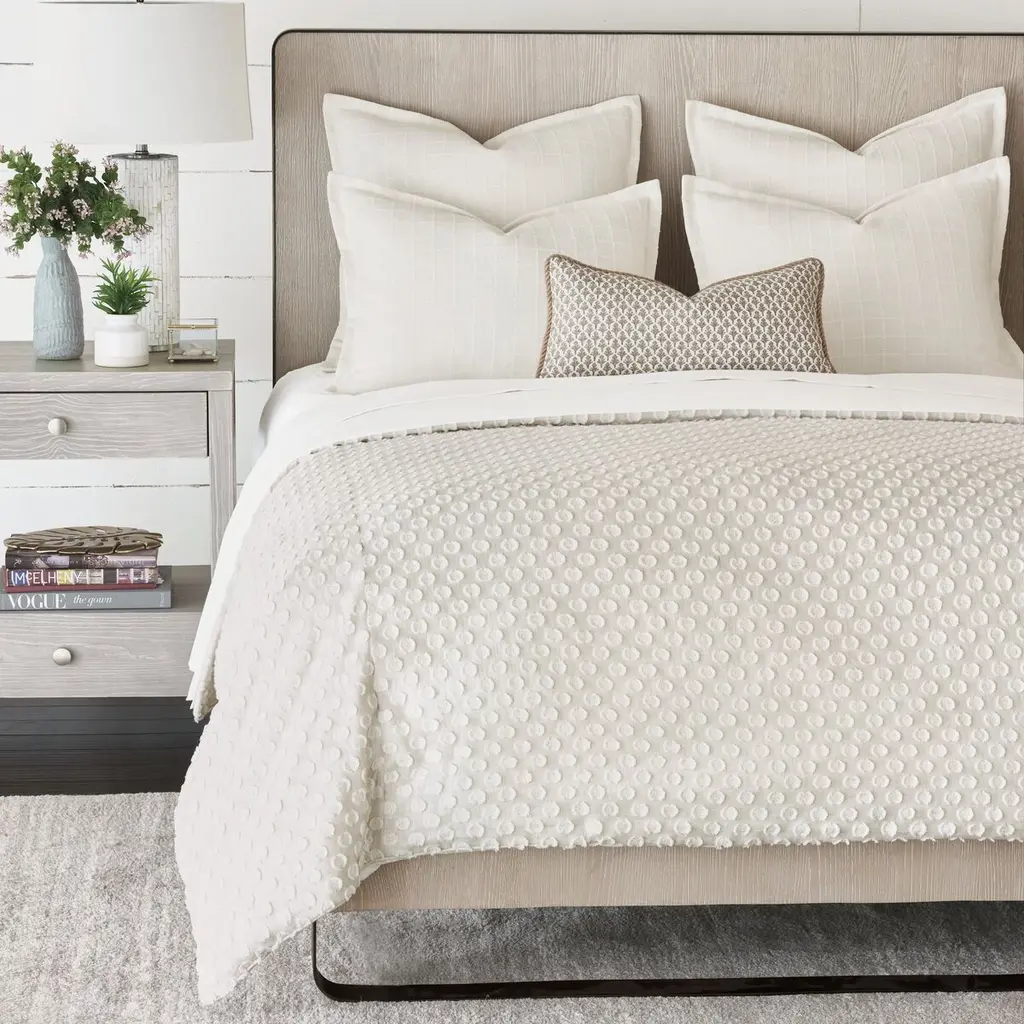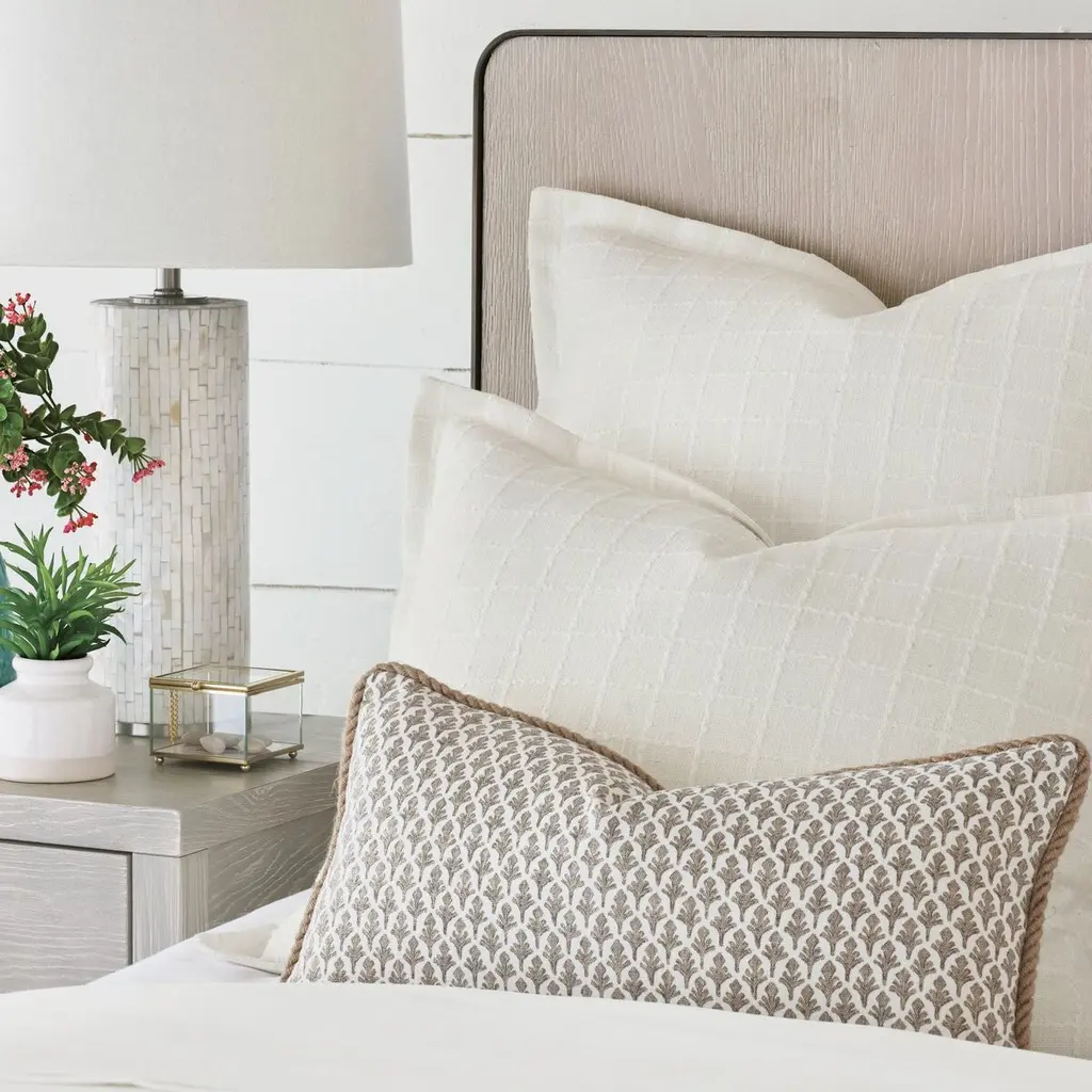 The front of this pillow sham has a tonal check pattern woven into it, providing a subtle dash of textural elegance; the reverse is unadorned white cotton. It comes with a feather insert for optimal plushness.