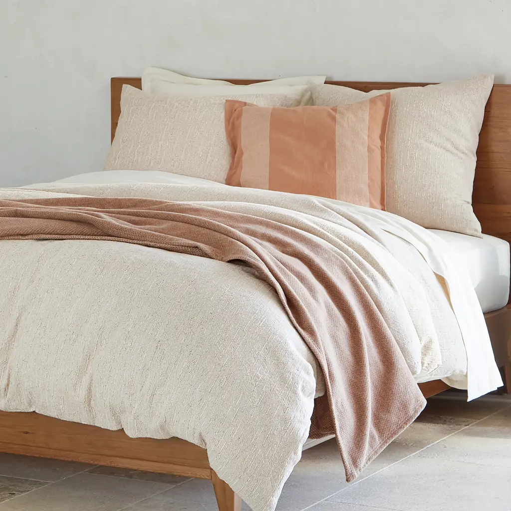 The subtle texture woven throughout Coyuchi's midweight duvet cover honors the craft of weaving. Inspired by the techniques of mid-century textile artists, this detailed weave moves weft yarns casually through the warp to create a textured hand-feel that's reminiscent of the rock formations along Toro Canyon.