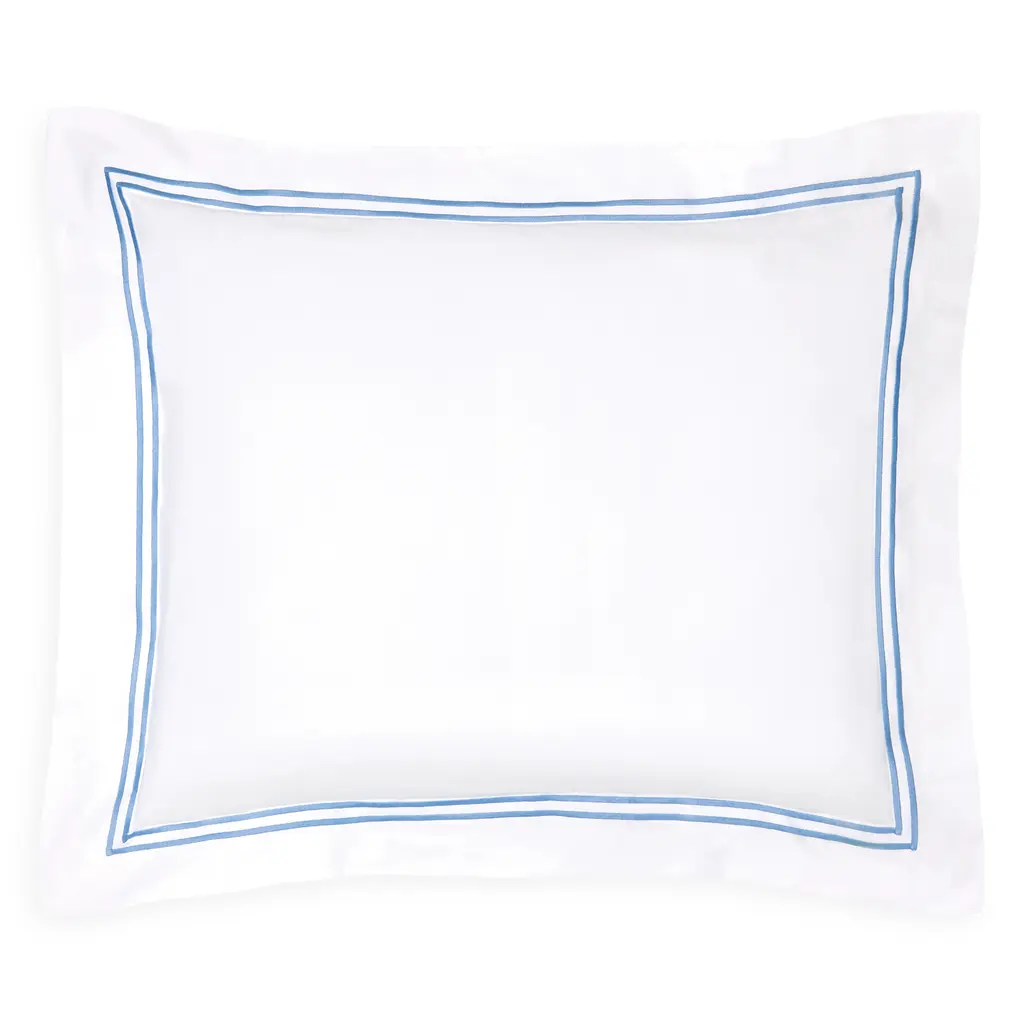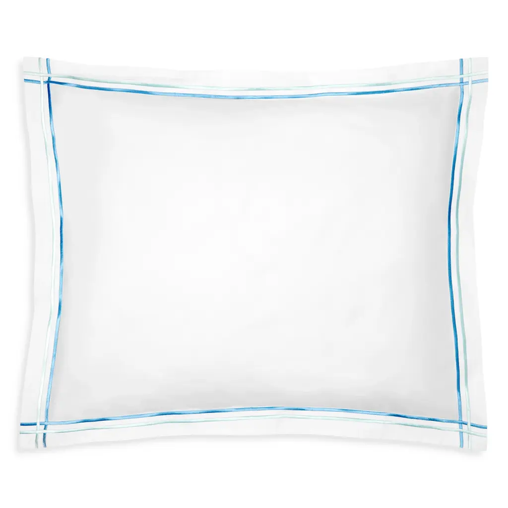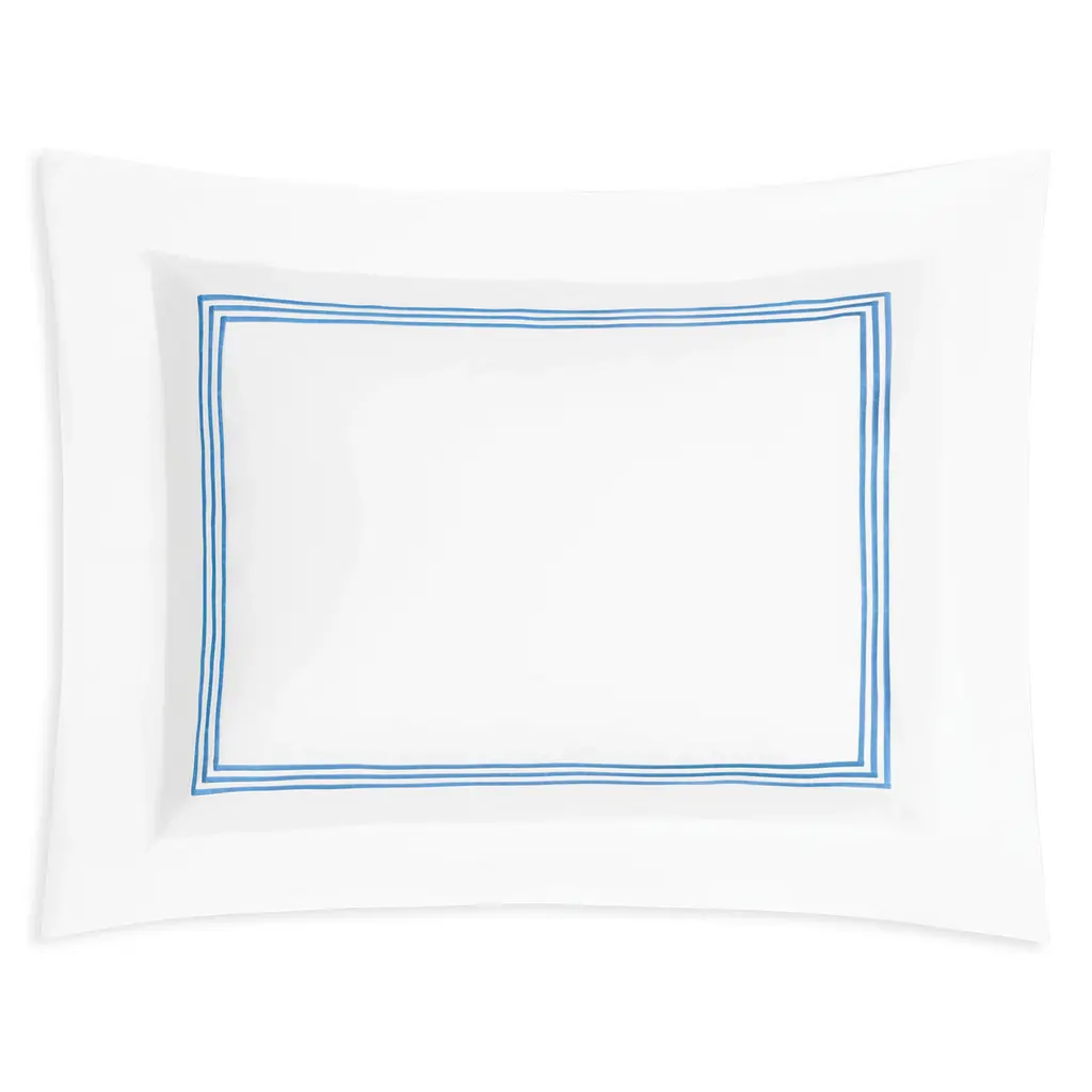 Transform any bedroom into a serene sanctuary with the Tratto Bedding Collection from SFERRA, featuring a white ground with blue accents.