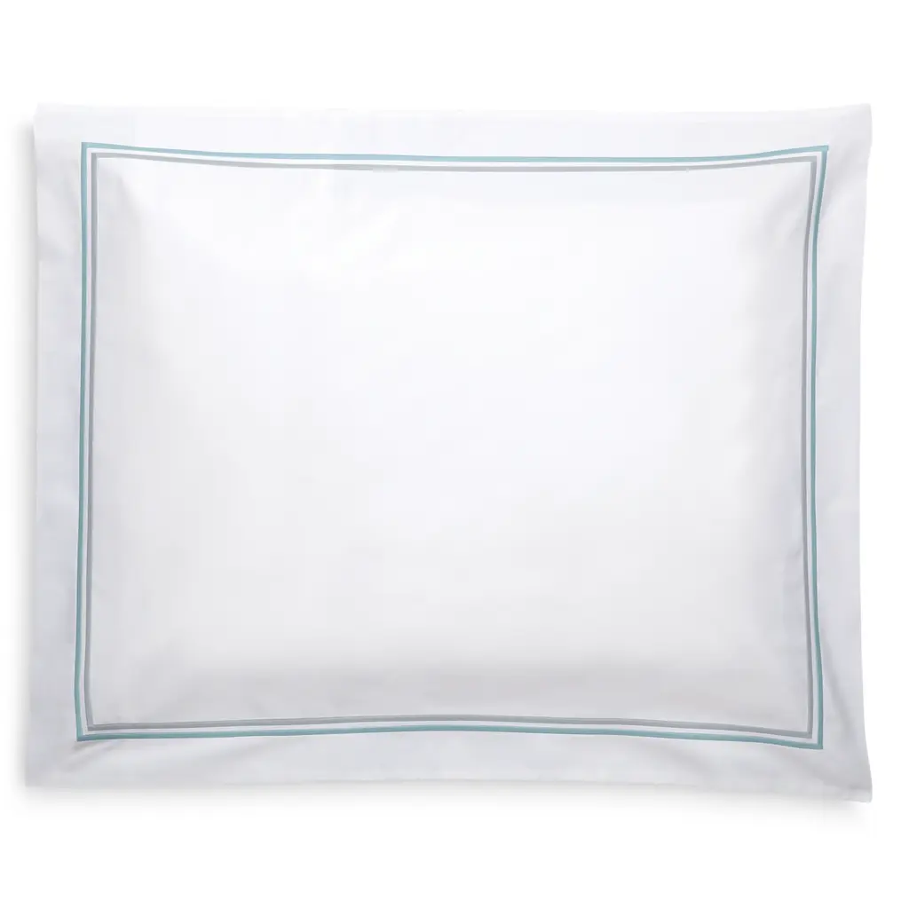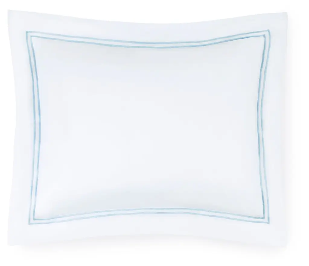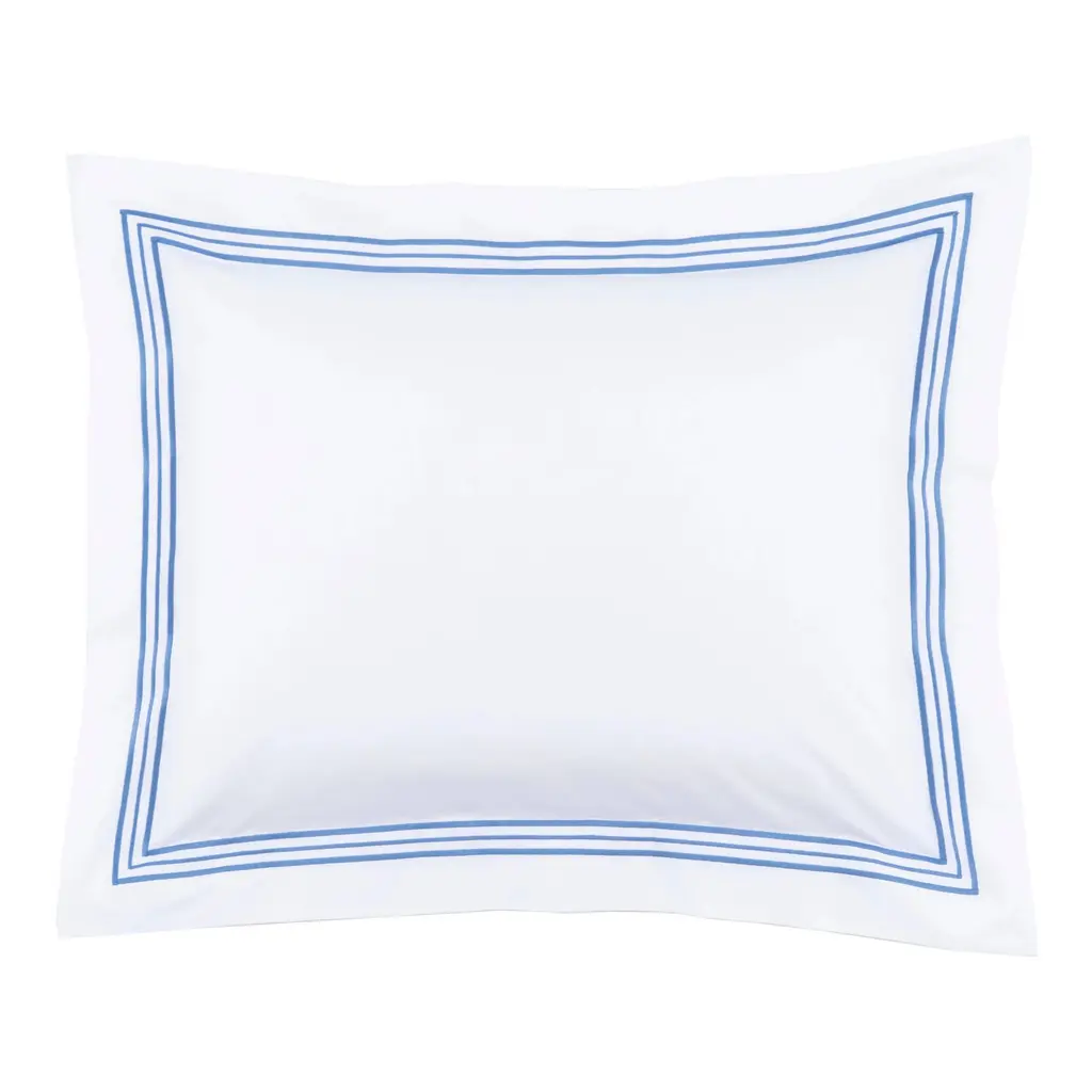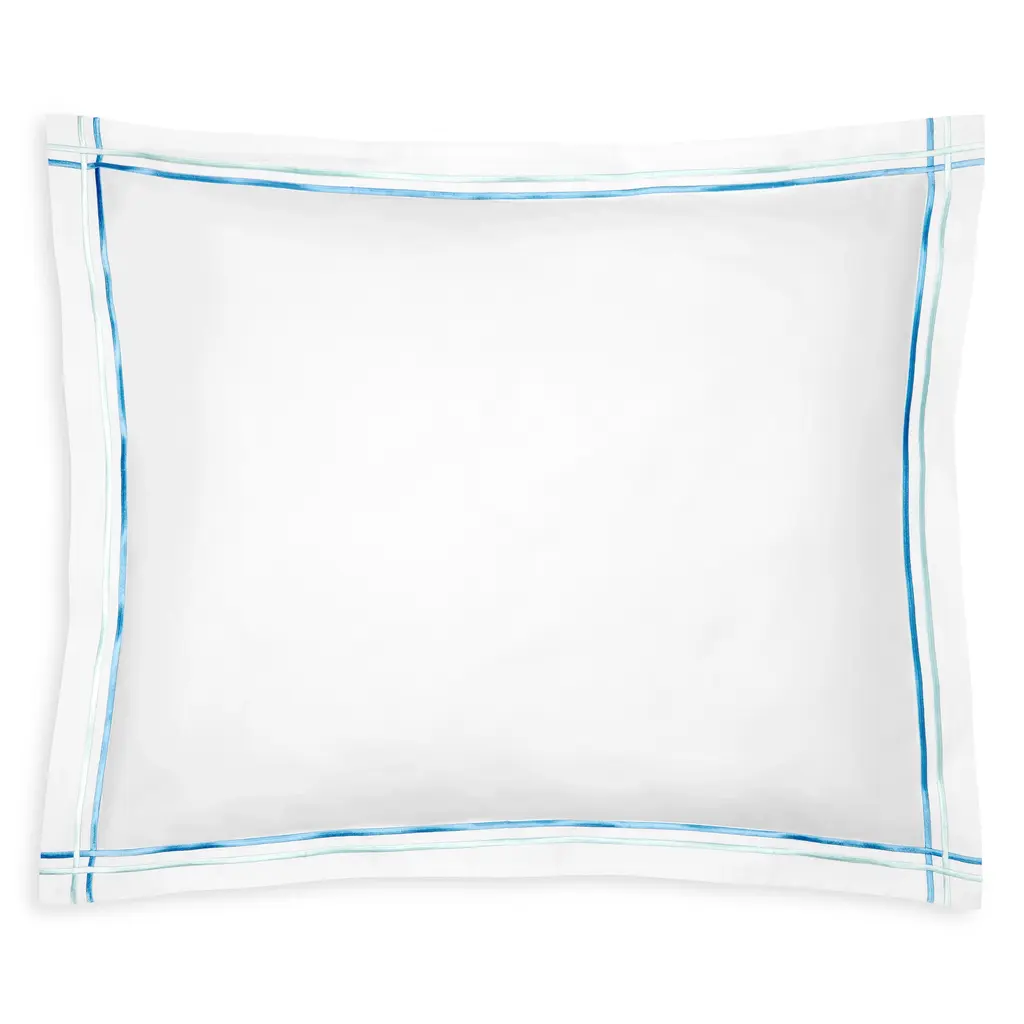 Transform any bedroom into a serene sanctuary with the Tratto Bedding Collection from SFERRA, featuring a white ground with blue accents.