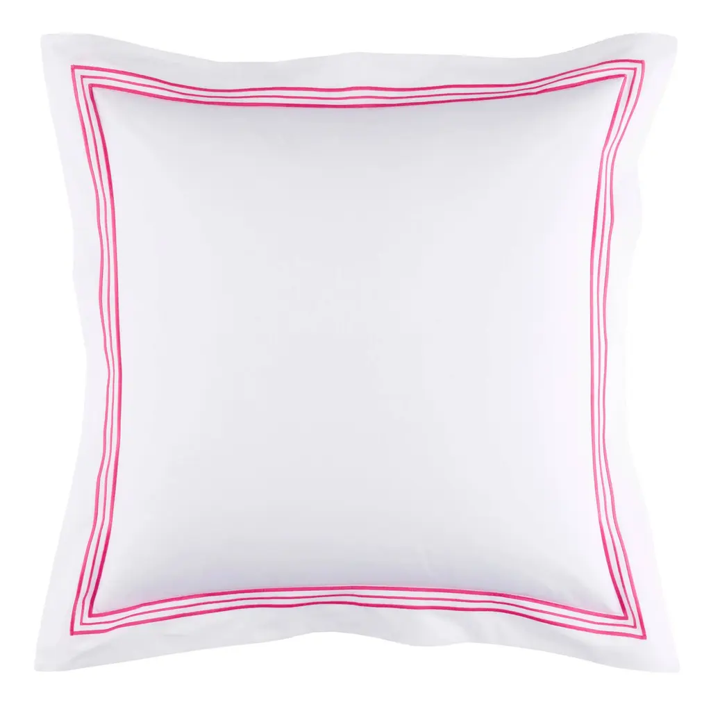 A simple, three-lined pattern adds a touch of refinement to this classic white, 400-thread-count cotton sham.
