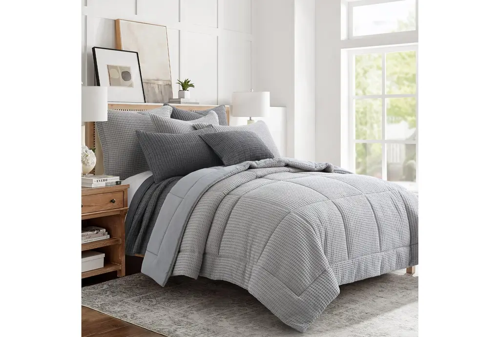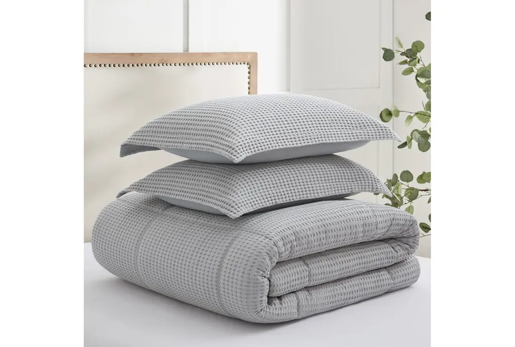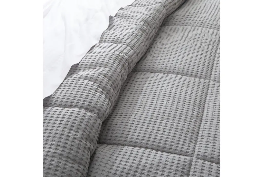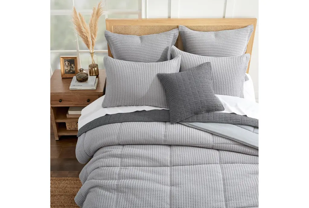Twin Comforter- Pewter Grey Cotton Waffle Weave 2 Piece Set With 1 Comforter + 1 Sham | 3 Piece | Machine Washable