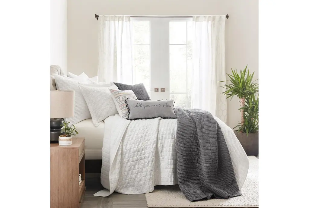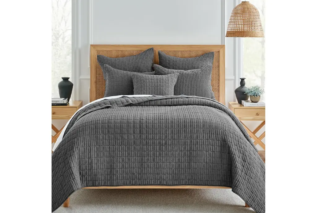 Experience the perfect blend of comfort and style with our Twin/Twin XL-Charcoal Black Natural Cotton Waffle 2 Piece Set. This set includes one quilt and one sham, both crafted from 100% cotton for a soft and breathable feel. The charcoal color brings a modern touch to any bedroom, making it an ideal choice for a contemporary setting.