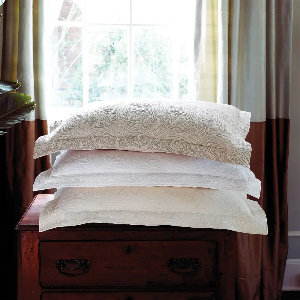Lush Egyptian cotton provides a sumptuous canvas for this Euro sham's embroidered designs. Finished with hemstitched detailing, this Euro sham makes an elegant finishing touch on any bed.