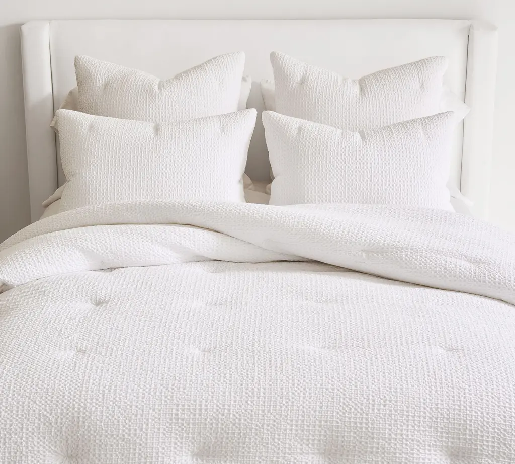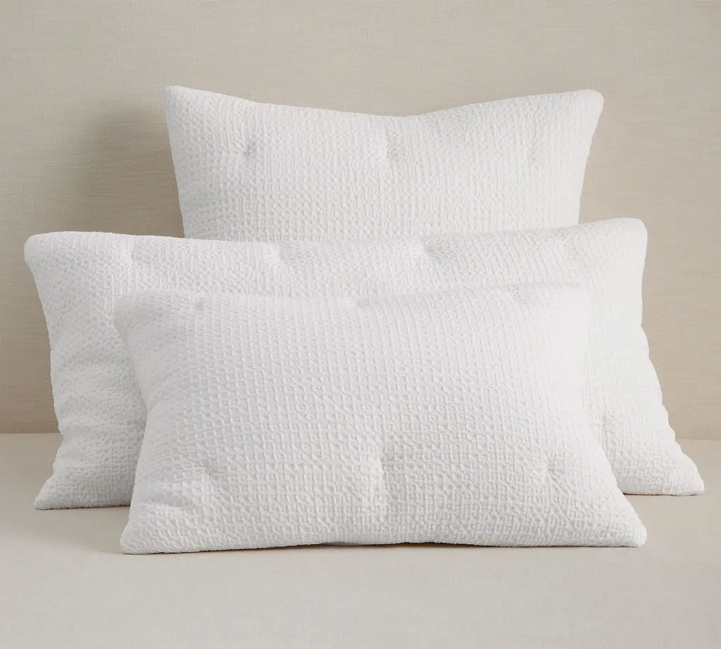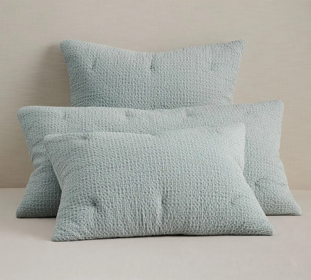A signature honeycomb weave brings elevated texture to our vintage-washed bedding – characterized by its simplicity and a relaxed style that ties back to a modern farmhouse aesthetic. Stonewashed for incredible softness, the cotton-linen fabric is tuck stitched by hand for a subtle yet beautiful design detail we love.