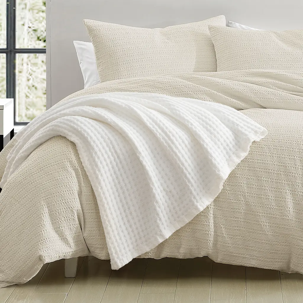 An incredibly soft accent for tossing on your bed. The DKNY PURE Waffle Blanket is a cozy layer crafted with 100% cotton in a waffle weave for a perfect touch of relaxed, breathable texture.