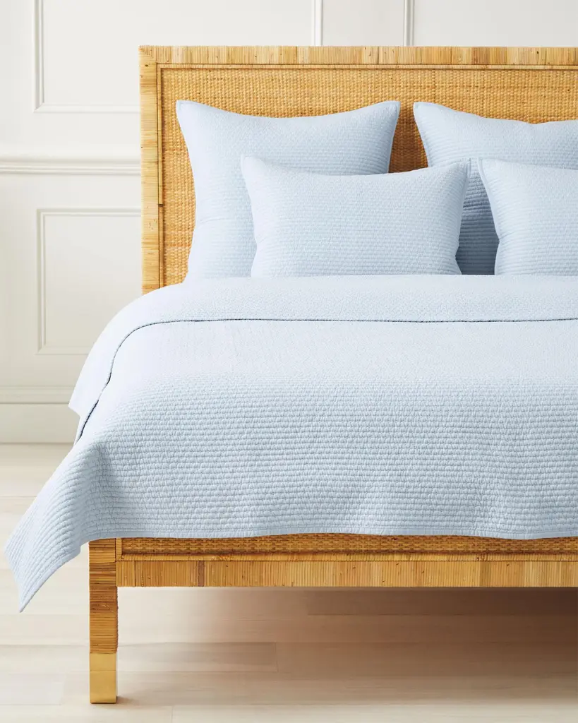 Feeling the room. Dense quilting. Chambray cotton. An inviting staple for lounging and layering.