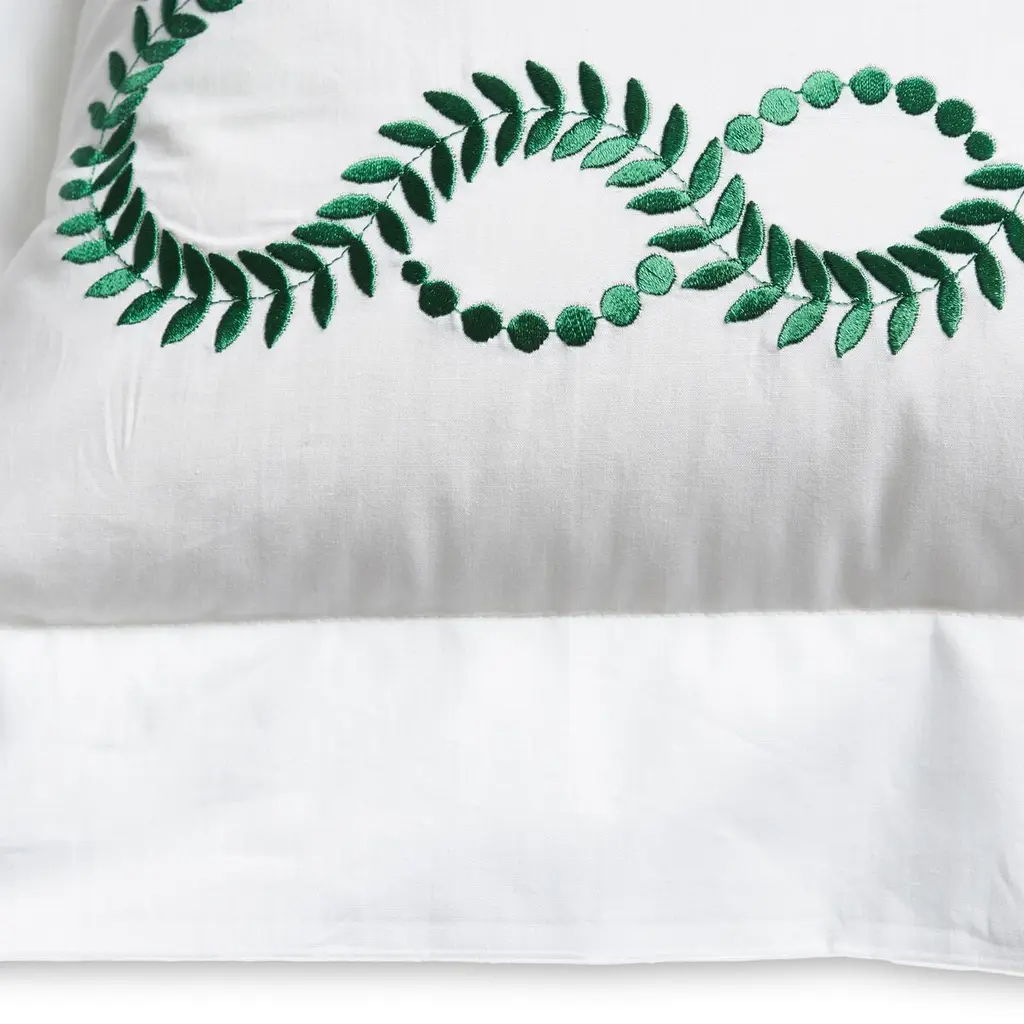 Exclusive to One Kings Lane: Embroidered vine motifs add a pop of color and a fanciful finishing touch to this exquisite Egyptian cotton percale sham, woven in Italy and artfully embroidered in the USA.