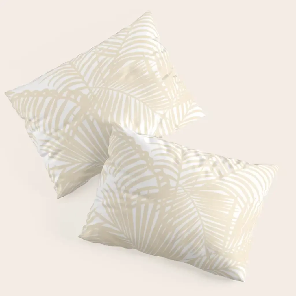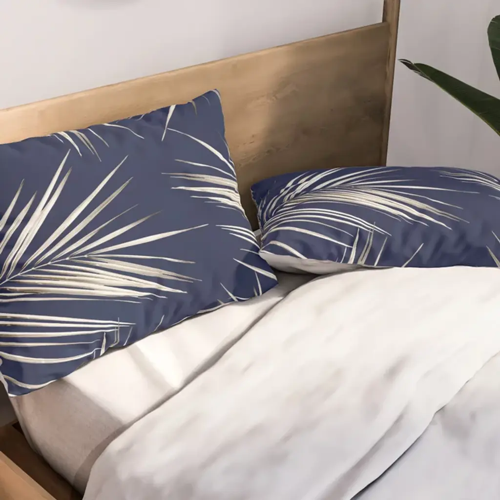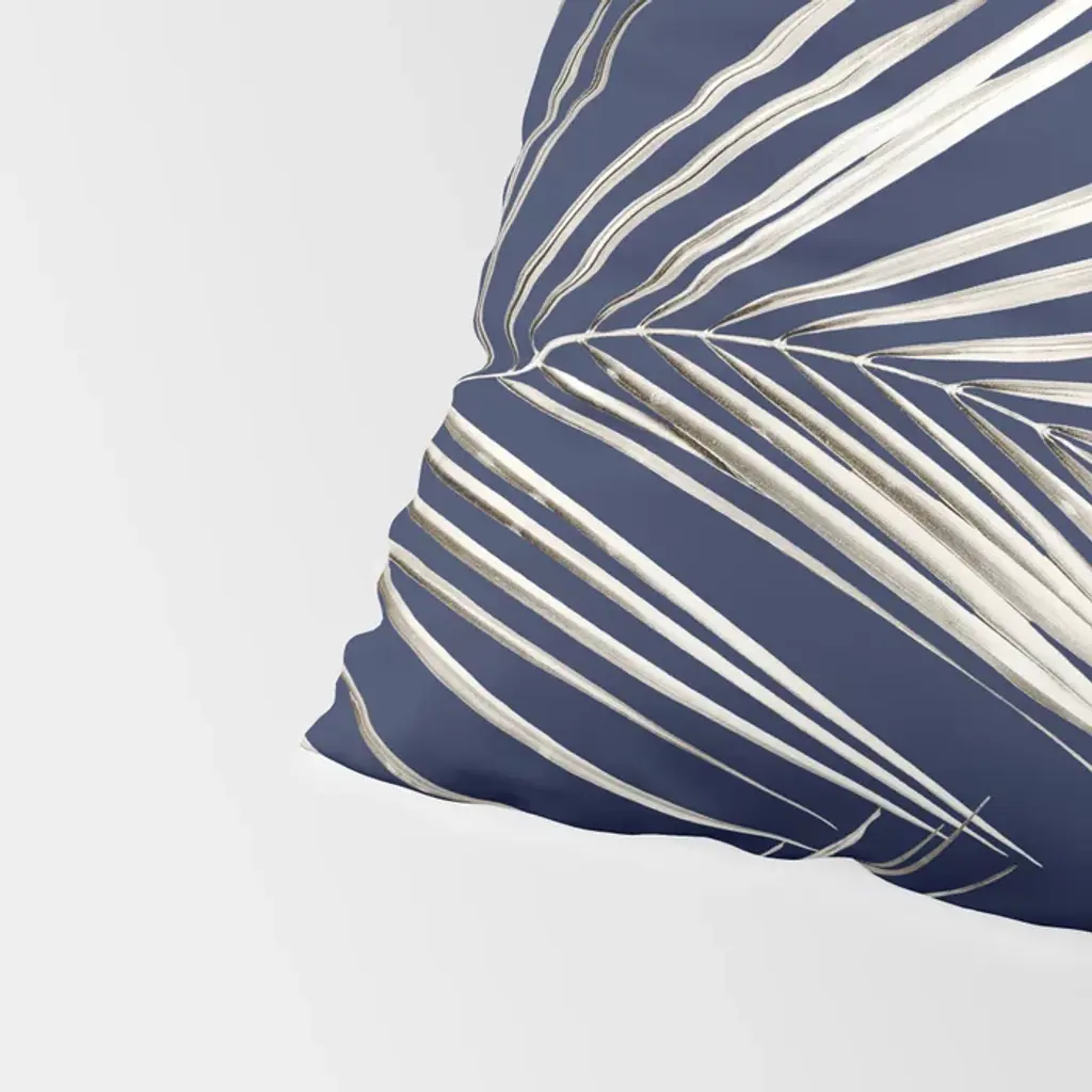 White Gold Palm Leaves On Navy Blue Pillow Sham