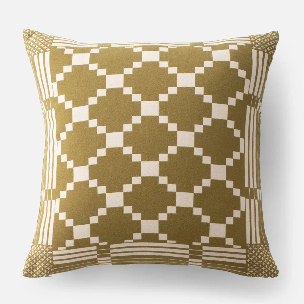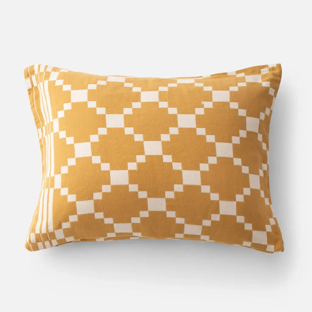 Rest your head comfortably season after season with the Winter + Summer Cotton sham. Crafted from yarn-dyed cotton, it’s inspired by textiles from the early nineteenth century. A traditional float weaving technique gives it graphic color contrast and geometric patterning that’s perfect for mixing and matching.Standard: 26" x 20"King: 36" x 20"Euro: 26" x 26"