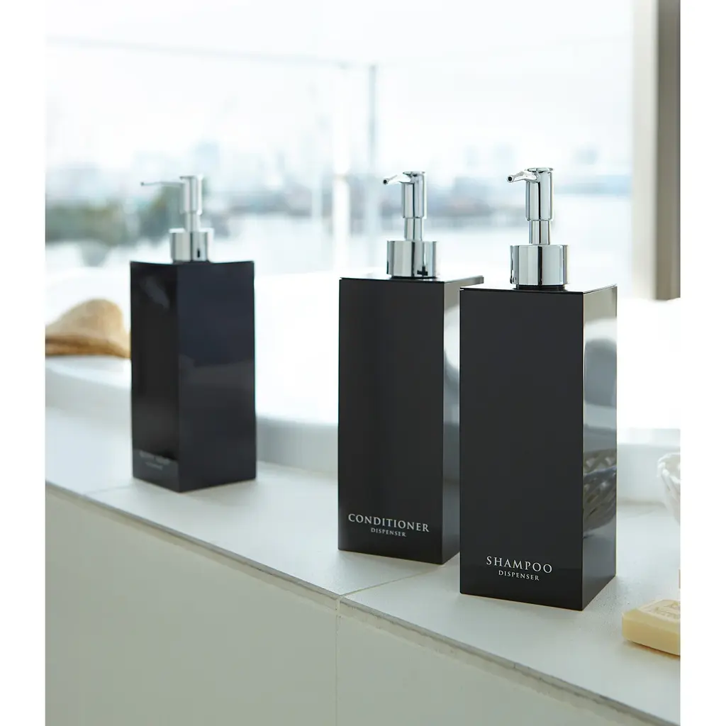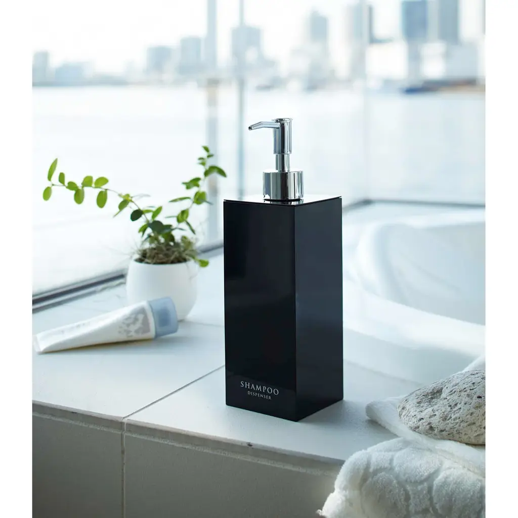 Yamazaki Home Square Shower Dispenser - Three Styles, Abs Plastic, Shampoo - L 2.76 X W 2.76 X H 9.06 Inches - Black