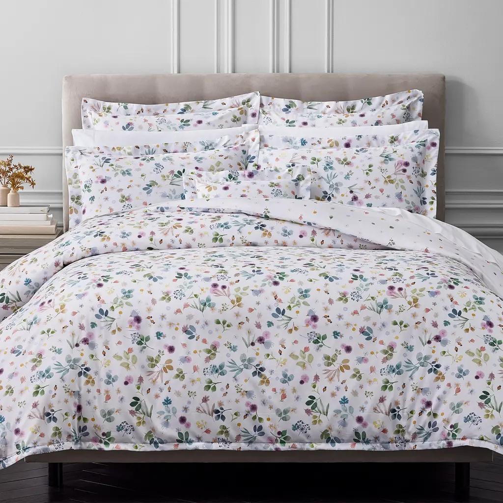 Create a playful ambiance in your room with the Ylvie Collection from Schlossberg. The bedding displays whimsical florals in striking tones on smooth sateen.