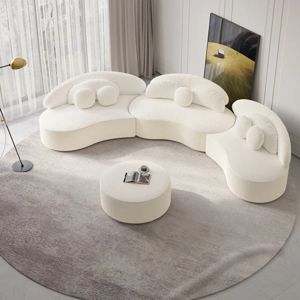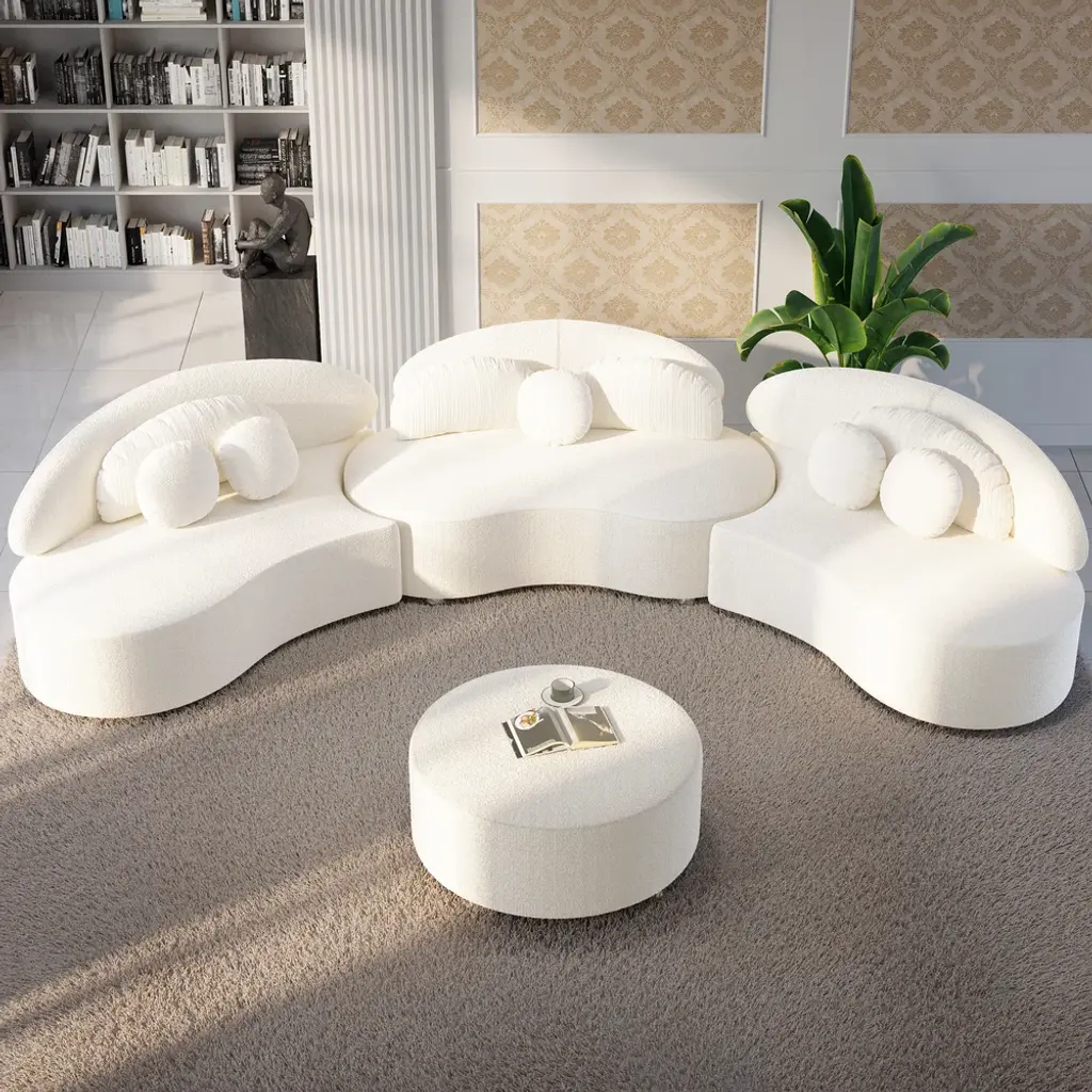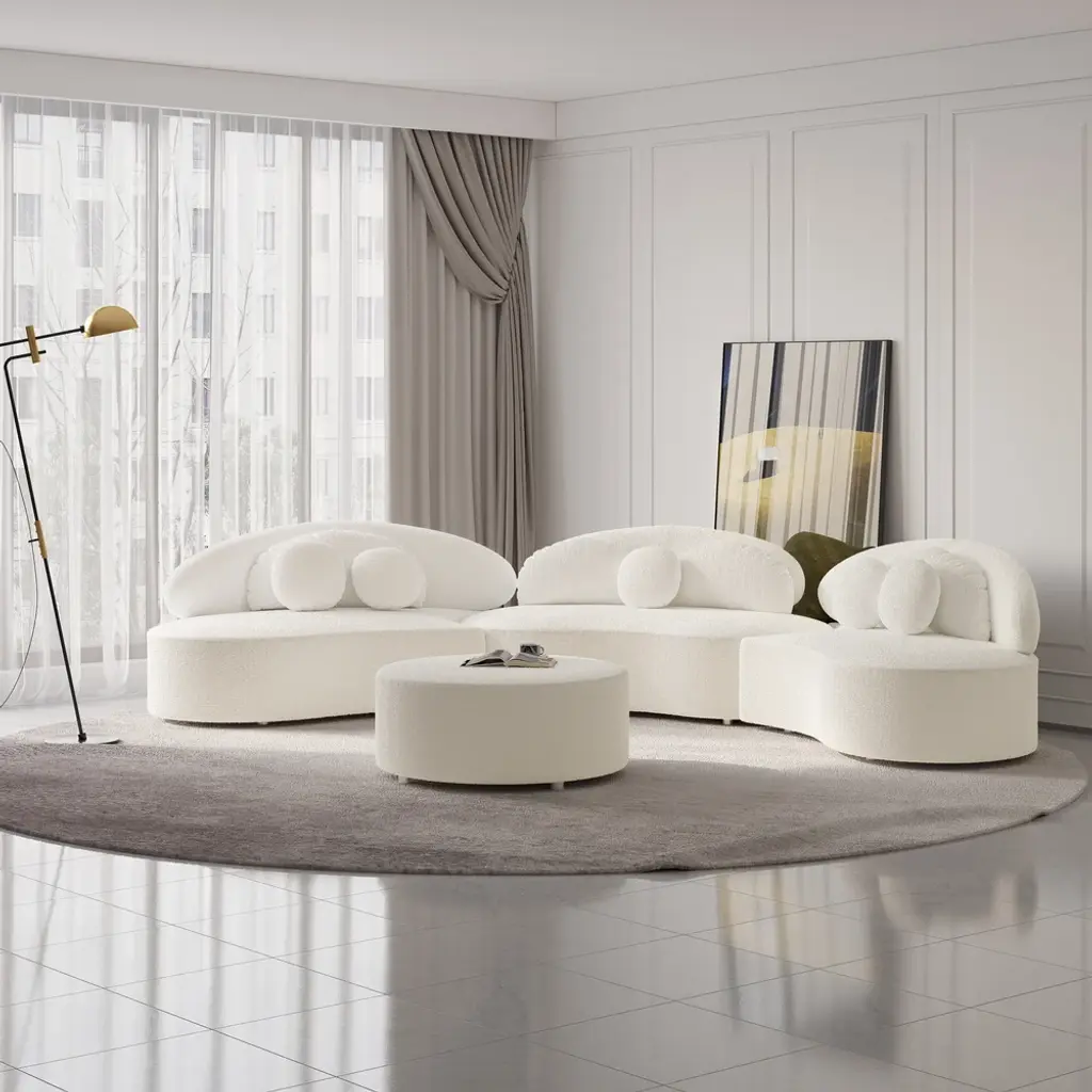 146" 4-Piece Curved Boucle Sectional Sofa With Ottoman & Pillows