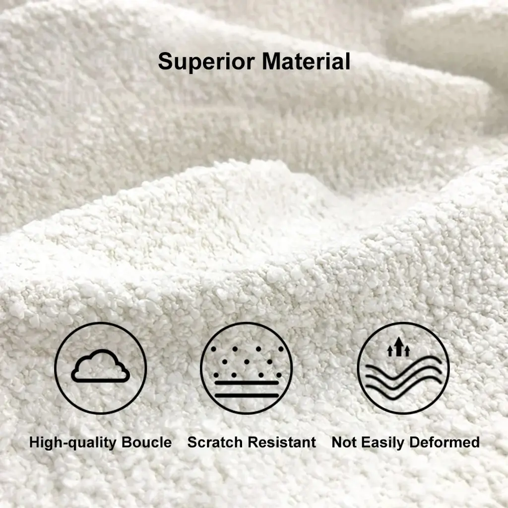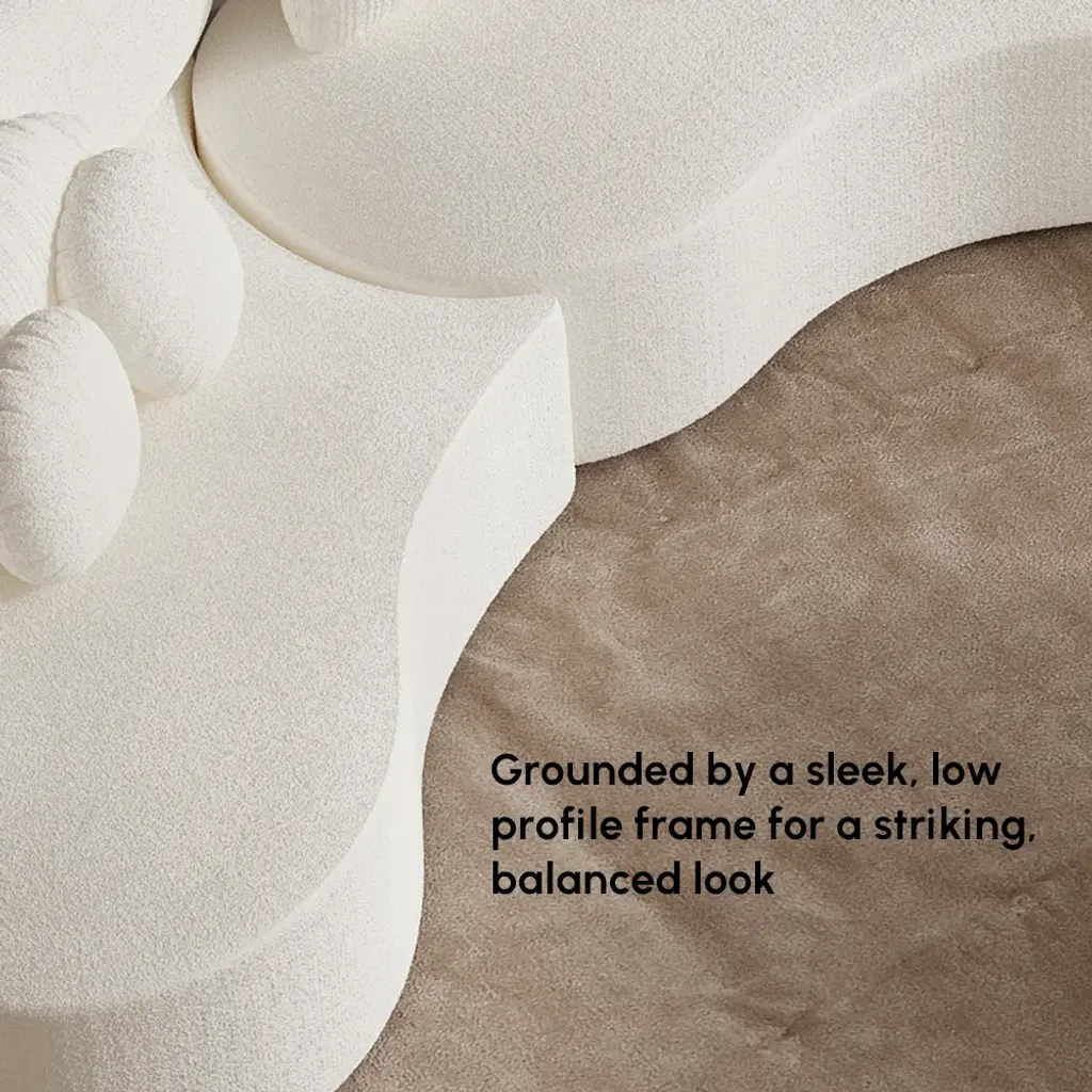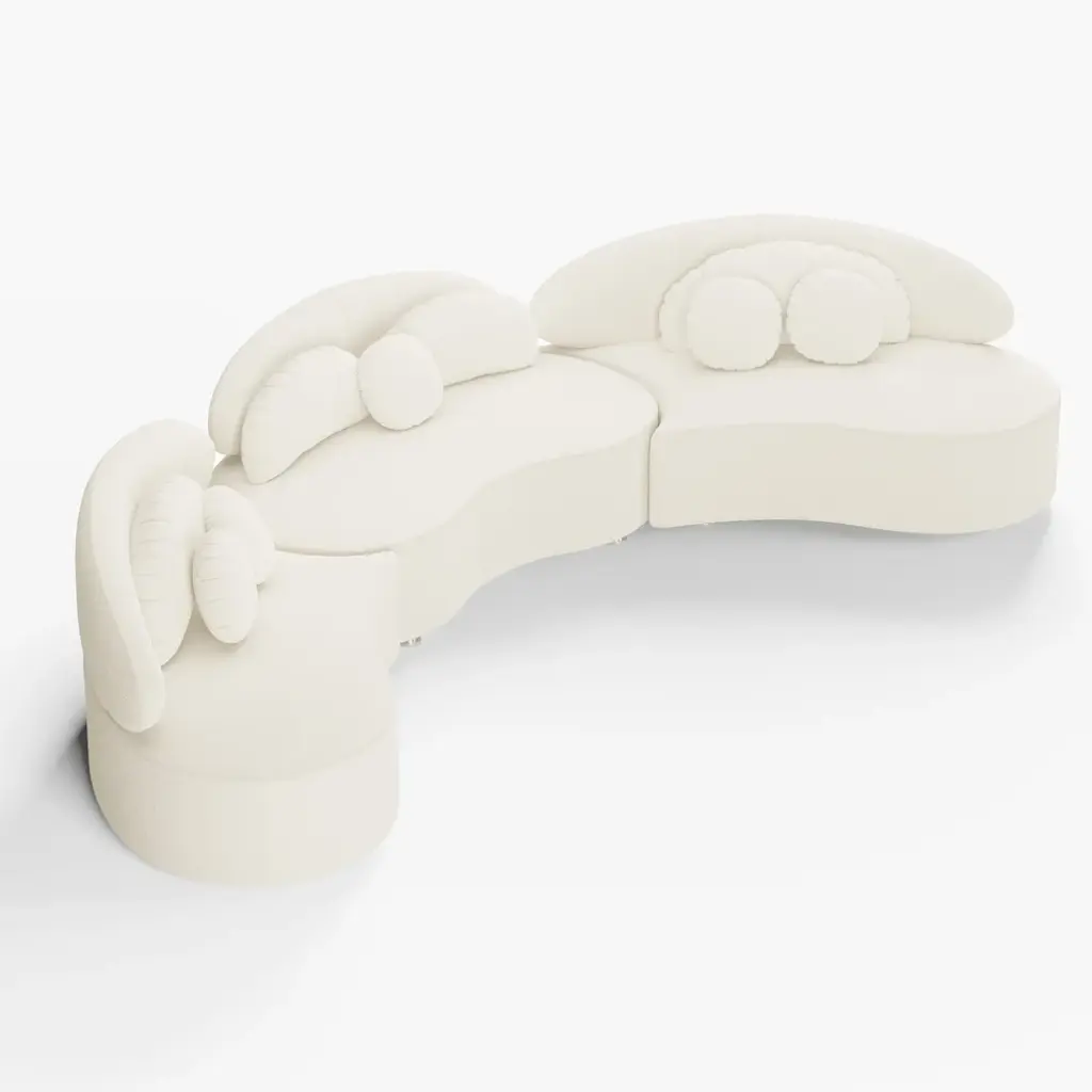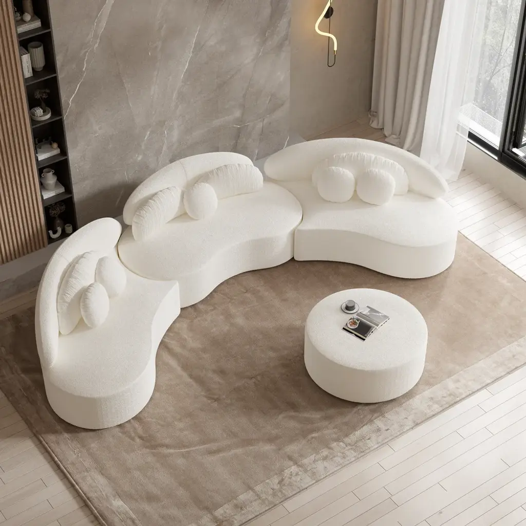 146" 4-Piece Curved Boucle Sectional Sofa With Ottoman & Pillows