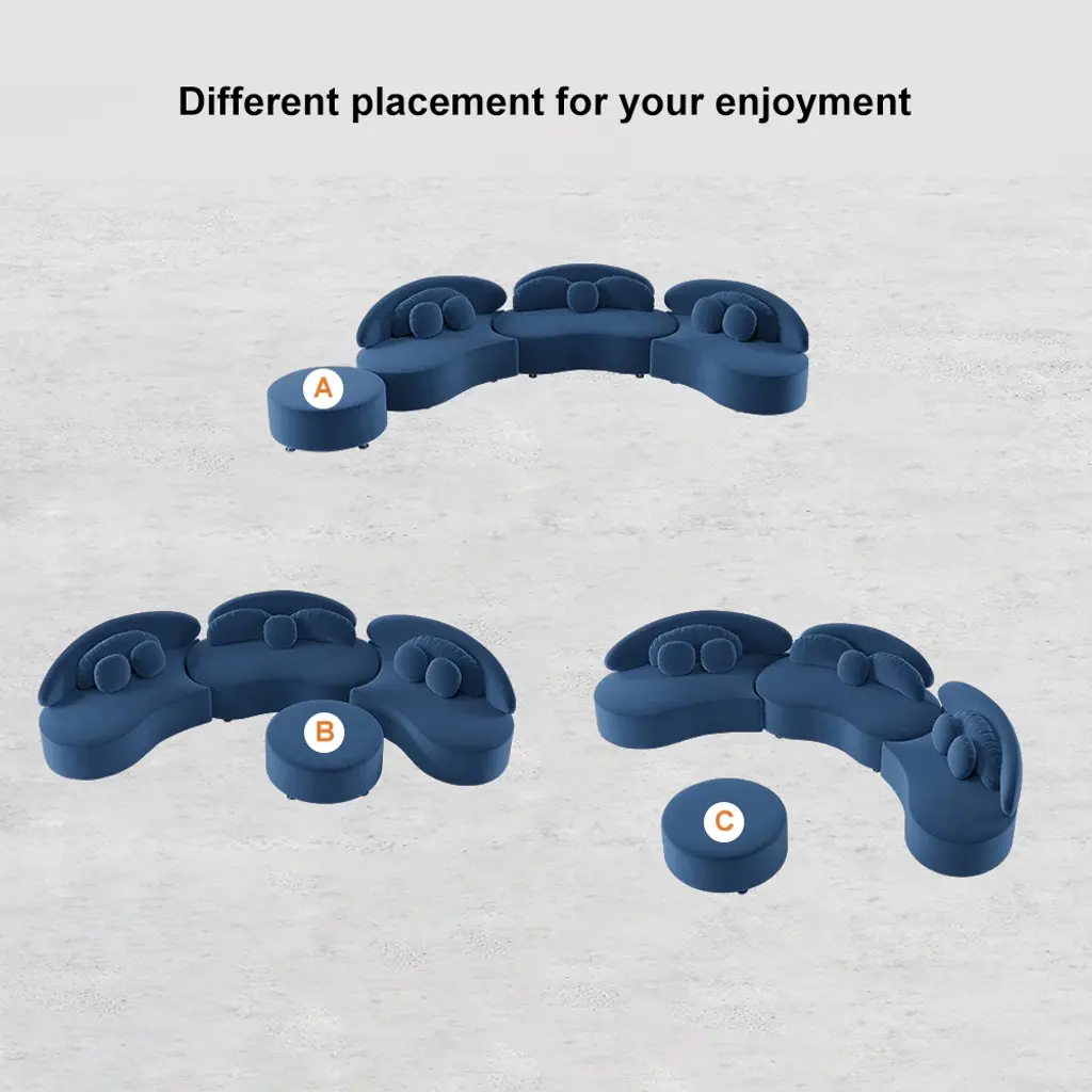 This elegant curved sectional redefines comfortable seating with its modular design. The included ottoman adds versatile functionality to your space. Create your perfect layout for memorable gatherings and daily relaxation.