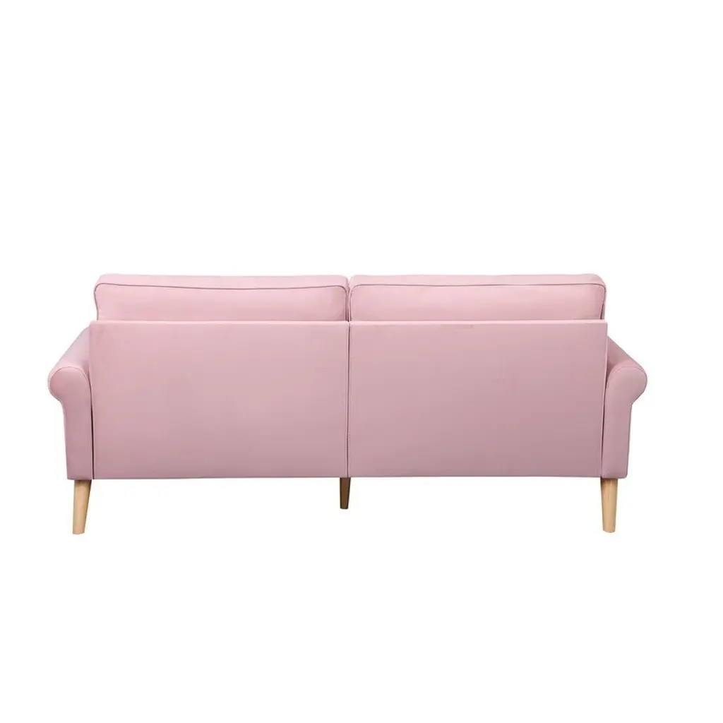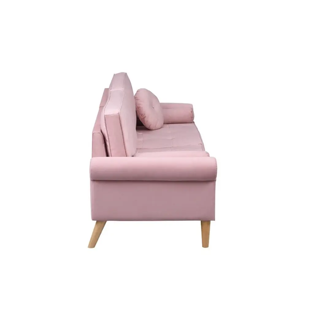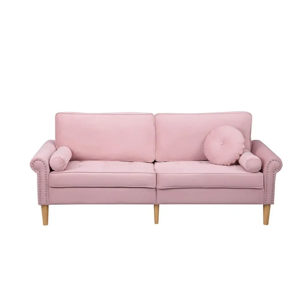 3-Seater Sofa With Copper Nail On Arms And 3 Pillow For Living Room - Pink