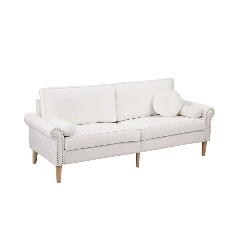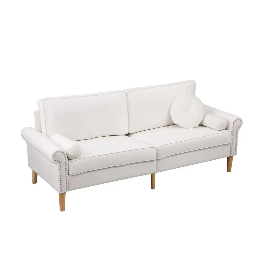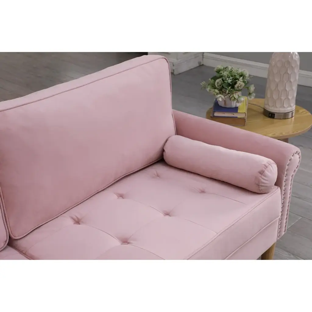 3-Seater Sofa With Copper Nail On Arms And 3 Pillow For Living Room - Pink