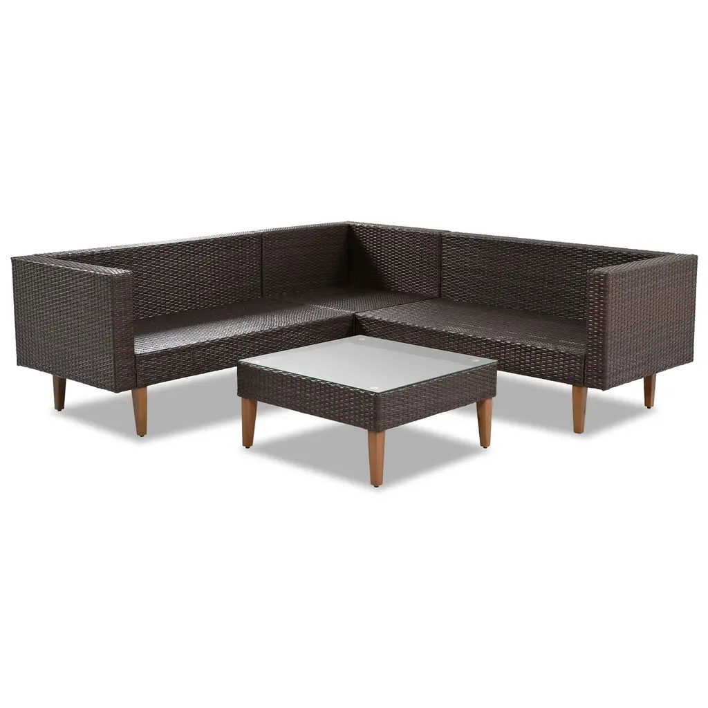 This 4-piece outdoor L-shaped sectional set with beige and brown cushions is perfect for any outdoor space. Made from durable, UV-resistant wicker and waterproof polyester fabric, it offers long-lasting comfort. Solid wood legs with adjustable feet ensure stability, while the decorative pillows add style and extra relaxation. Easy to assemble, this sectional comfortably accommodates up to 4-5 people, making it ideal for any outdoor gathering.