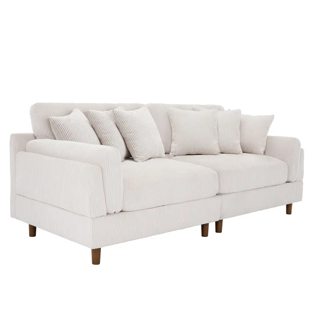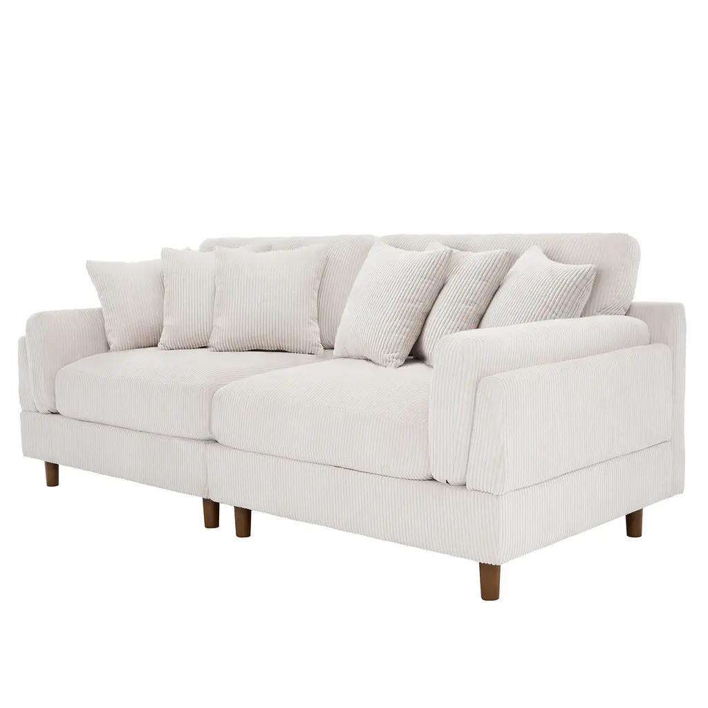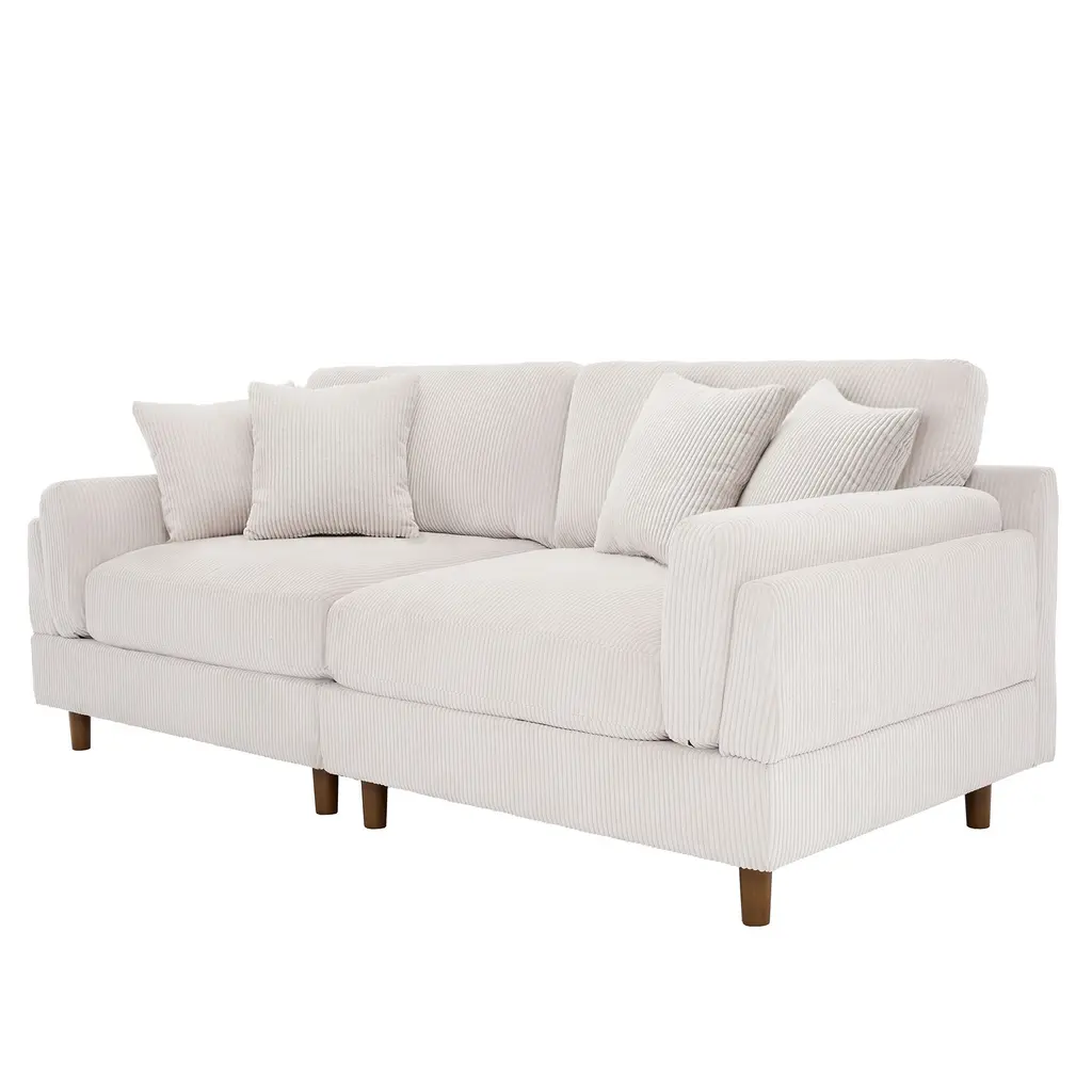 Elevate your living space with our chic corduroy sofa, a perfect blend of modern style and exceptional comfort. Featuring plush, deep seat cushions and textured corduroy upholstery, this sofa is built on a robust wooden frame with foam-filled pocket springs, offering unparalleled support and durability. Its sleek design is enhanced by tapered wooden legs with a rich brown finish, and the square arms coupled with soft, padded backrests add a touch of elegance to its contemporary look.Product informations:Highlights: