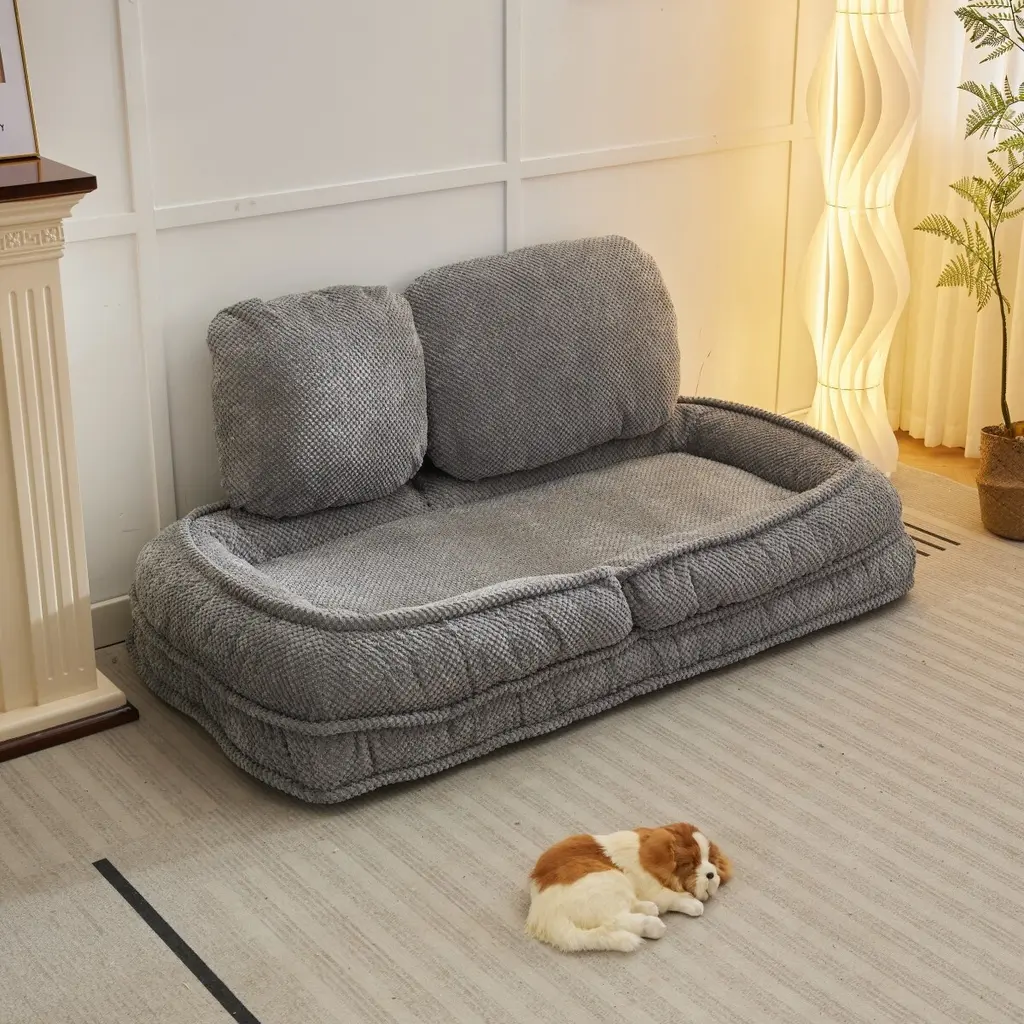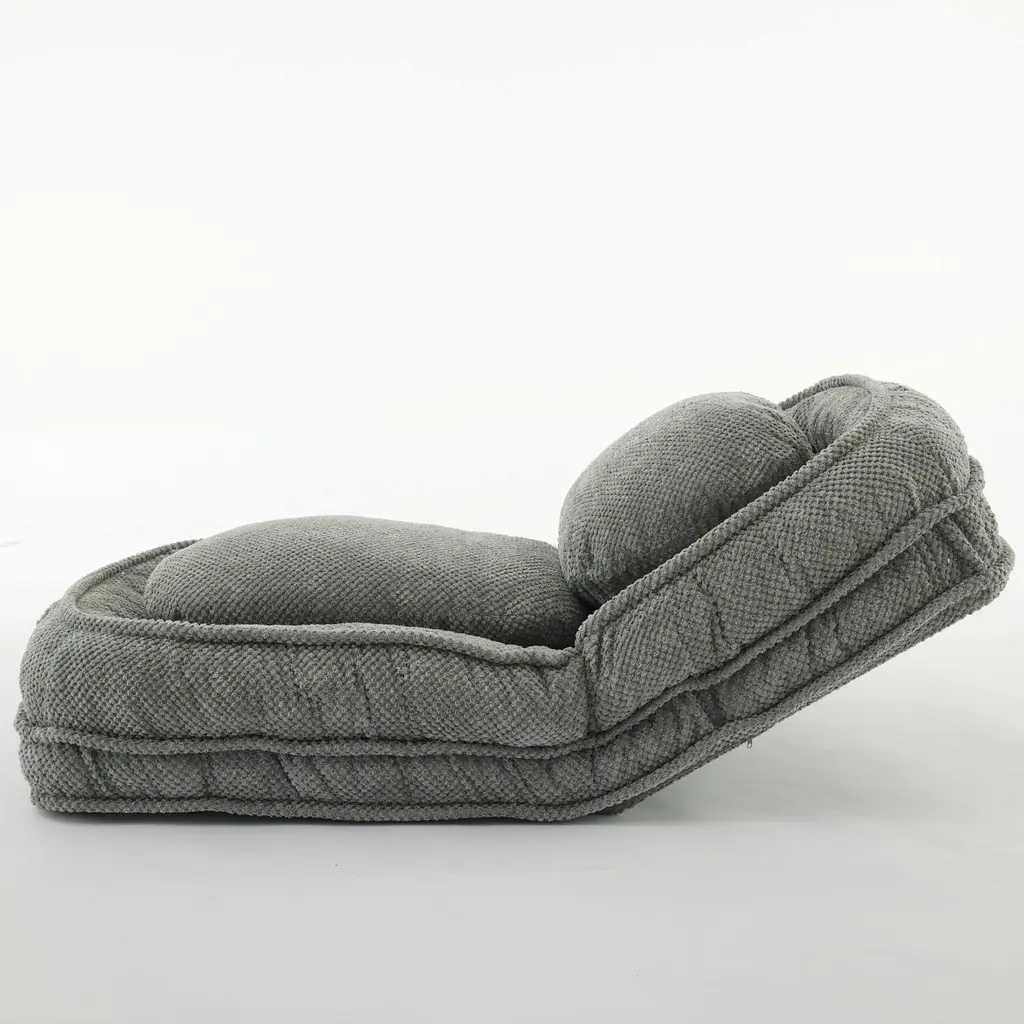 Adjustable Upholstered Human Dog Bed Floor Lounge Chair With 2 Pillows - Grey