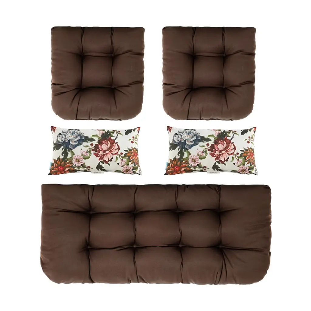 Artplan Outdoor Cushions Loveseat All Weather Chair Cushions Bench Cushions Set Of 5 Wicker Tufted Pillow For Patio Furniture,brown