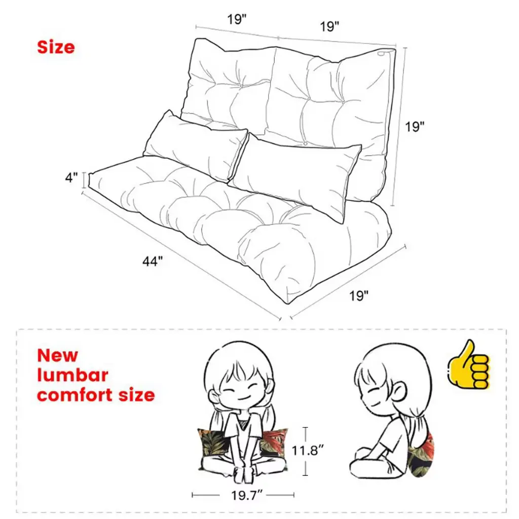Outdoor seat cushion set of 5 with wicker design for patio funiture, can give you an elegant and comfortable feeling. Various color options to choose for your front porch, backyard, patio or even inside spaces. This loveseat cushion set can also work as a replacement seat cushion. Made of 100% recycled polyester by plastic bottles , which environmental and easy to clean. Size:19"L*44"W*4"H. Cushion's non-removable but easy to maintain. You can wash them under 30 degrees water coverage and spot clean. They'll be durable and long lasting due to our water-and fade-resistant outdoor polyester fabric protects.