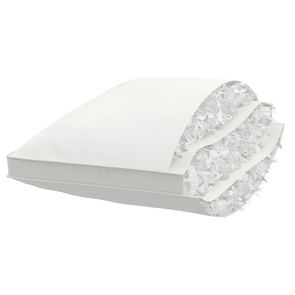 BERGVEN Pillow, high Queen. A high pillow in soft dobby woven cotton, filled with duck down and duck feathers. The resilient inner core of down and feathers is surrounded by a soft down/feather filling. This gives good support and relieves pressure on your neck and shoulders, helping you to relax.