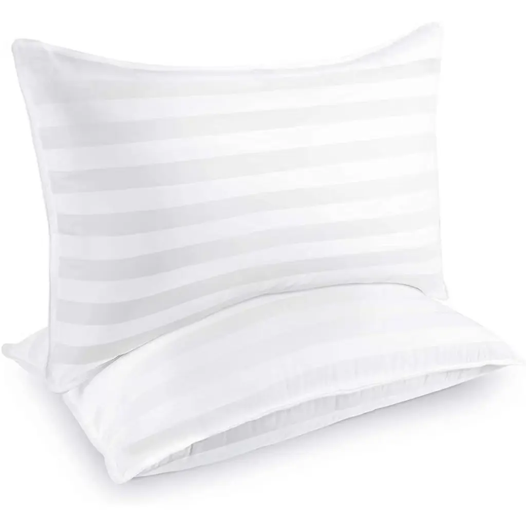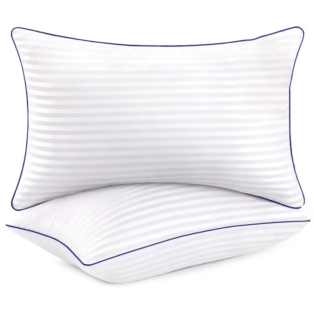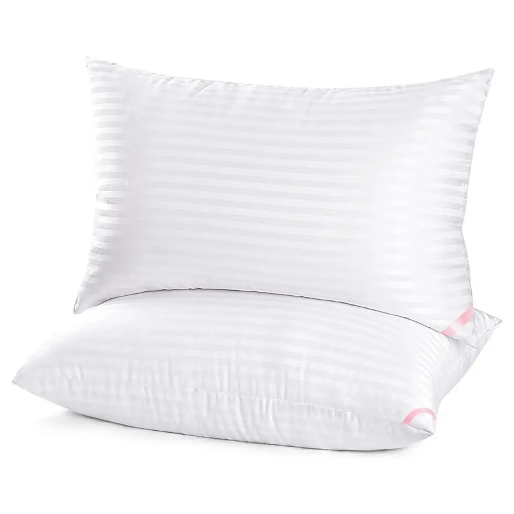 Experience hotel-quality comfort with this 2-pack down alternative pillow set, designed to accommodate all sleeping positions while delivering premium support and temperature regulation. Featuring a 250-thread-count cotton cover filled with hypoallergenic down alternative clusters, these medium-firm pillows provide the perfect balance of softness and structure for back, stomach, and side sleepers. The breathable construction prevents overheating and night sweats, while the durable inner lining prevents filling shift during movement. Machine washable for effortless maintenance, these pillows combine luxury aesthetics with practical functionality for master bedrooms, guest rooms, dormitories, or apartment living. Product Selling Points: All-Sleeper Design Support Engineered with adaptive loft and resilience to properly support back, side, and stomach sleeping positions without collapsing or over-firming. Breathable Temperature Regulation Features breathable cotton shell and air-flow down alternative filling that dissipates heat to reduce night sweats and overheating. Machine Washable Convenience Fully washable and dryer-safe design simplifies maintenance compared to memory foam pillows, ensuring long-term freshness and hygiene. Non-Shift Filling Technology Internal baffle construction keeps down alternative clusters evenly distributed, preventing clumping and maintaining consistent support over time. Hotel-Grade Luxury Aesthetic 250-thread-count cotton shell and plump stitching deliver a premium look and feel that elevates bedroom decor while providing functional comfort.