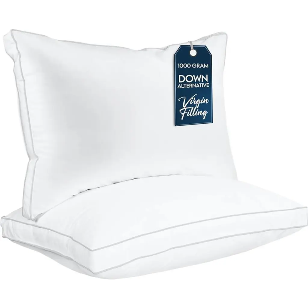 Elevate your sleep experience with this premium 2-pack gusseted pillow set, designed for exceptional support and comfort across all sleeping positions. Featuring a tailored gusset construction with double-stitched edges and elegant piping, these pillows combine hotel-inspired luxury with advanced functionality. Filled with high-resiliency poly-fiber clusters, they maintain optimal loft while providing adaptive support for head, neck, and shoulder alignment. The breathable cotton-blend cover enhances softness against the skin while promoting airflow to reduce heat buildup. Ideal for master bedrooms, guest rooms, or dormitories, these pillows deliver lasting comfort with a refined aesthetic that complements any bedding ensemble. Product Selling Points: Gusseted Edge Design Features structured side panels that prevent filling shift while providing consistent loft and support for improved spinal alignment. All-Sleeper Comfort Engineering Specially designed to accommodate back, stomach, and side sleepers with balanced firmness that adapts to individual pressure points. High-Resiliency Poly-Fiber Fill Premium cluster fiber filling maintains shape and support over time without clumping or flattening, ensuring long-term durability. Breathable Cotton-Blend Cover Soft, hypoallergenic fabric enhances comfort while promoting airflow to reduce overheating and night sweats during sleep. Hotel-Grade Aesthetic Details Elegant piping and double-stitched seams deliver a refined look while reinforcing structural integrity for extended use.