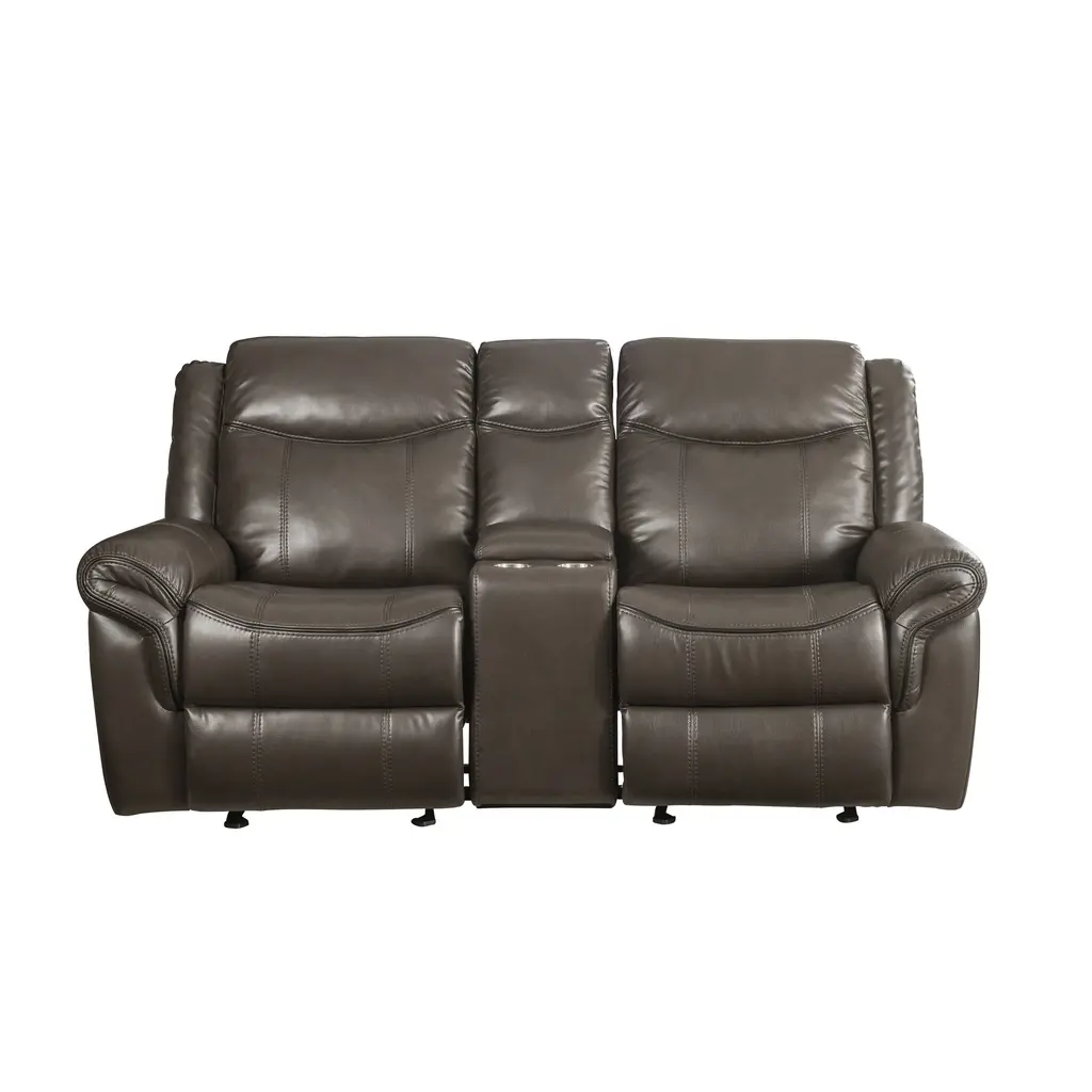Brown Chenille Loveseat With 2 Matching Color Toss Pillows - Grey