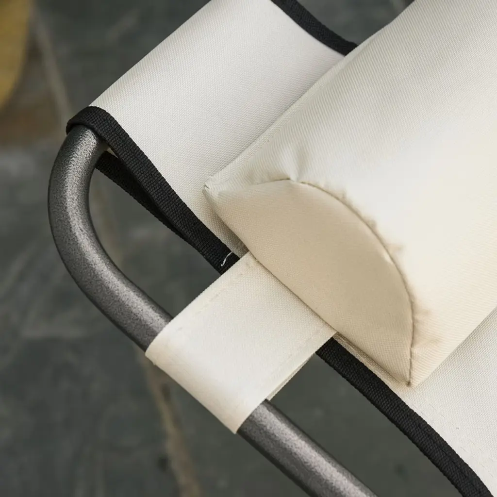 Cesicia Outsunny Folding Chaise Lounge Chair, 2-in-1 Tanning Chair With Pillow & Pocket, Cream White