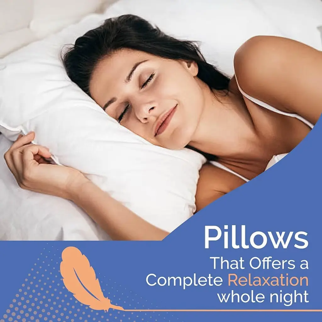Introducing our Feather Down Pillows, meticulously designed to provide exceptional support for your head and spine, promoting a more comfortable and pain-free sleep experience. Crafted with hypoallergenic materials, these pillows are an ideal choice for allergy-sensitive individuals, resisting dust mites and common allergens. The 100% cotton fabric ensures easy cleaning and maintenance, ensuring a fresh and hygienic sleeping environment. This pack includes 1 queen-sized pillow, offering great value and making it a breeze to outfit your entire bed. Experience the epitome of luxury with our hotel collection pillows, filled with premium white goose down & feather for unparalleled softness and comfort, elevating your sleep to a truly luxurious level.