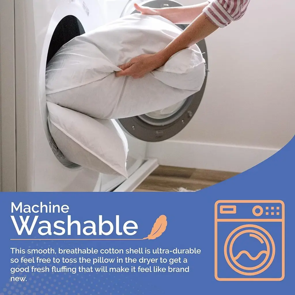 Introducing our Feather Down Pillows, meticulously designed to provide exceptional support for your head and spine, promoting a more comfortable and pain-free sleep experience. Crafted with hypoallergenic materials, these pillows are an ideal choice for allergy-sensitive individuals, resisting dust mites and common allergens. The 100% cotton fabric ensures easy cleaning and maintenance, ensuring a fresh and hygienic sleeping environment. This pack includes 1 standard-sized pillow, offering great value and making it a breeze to outfit your entire bed. Experience the epitome of luxury with our hotel collection pillows, filled with premium white goose down & feather for unparalleled softness and comfort, elevating your sleep to a truly luxurious level.