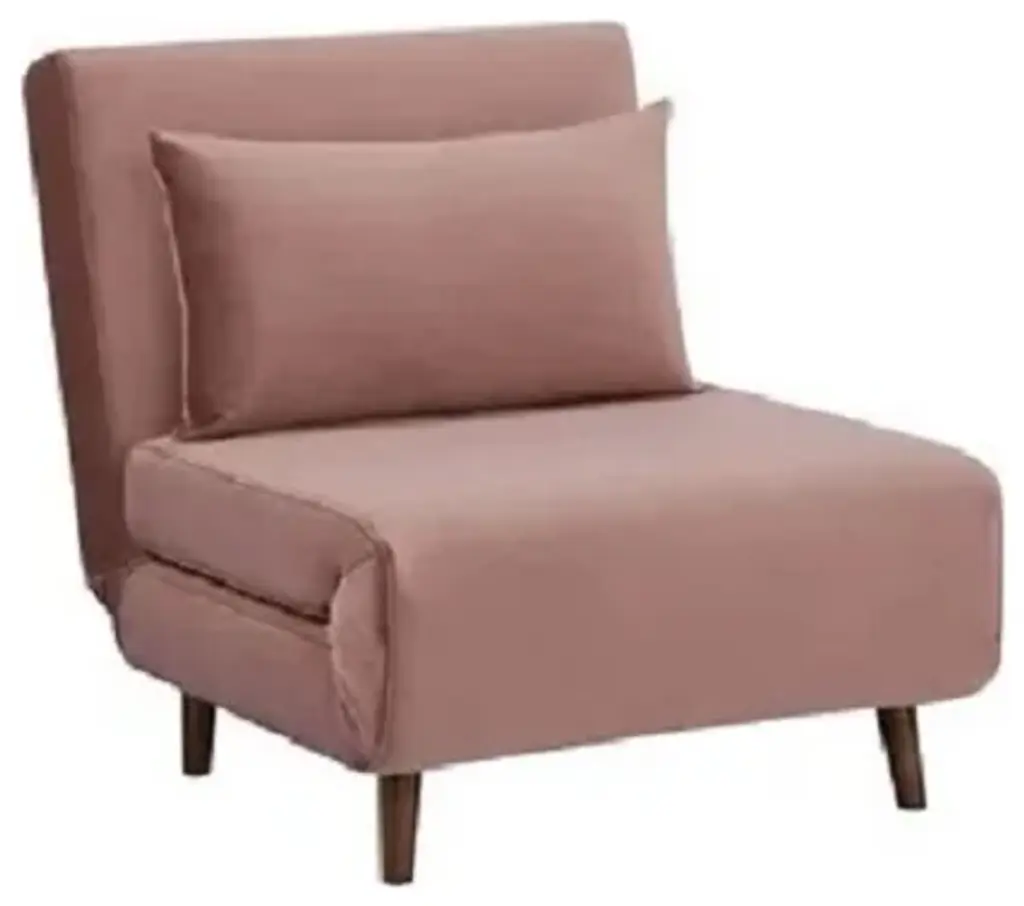 Pine Frame Convertible Futon Chair Upholstered In Velvet With Matching Pillow, Blush Pink Velvet