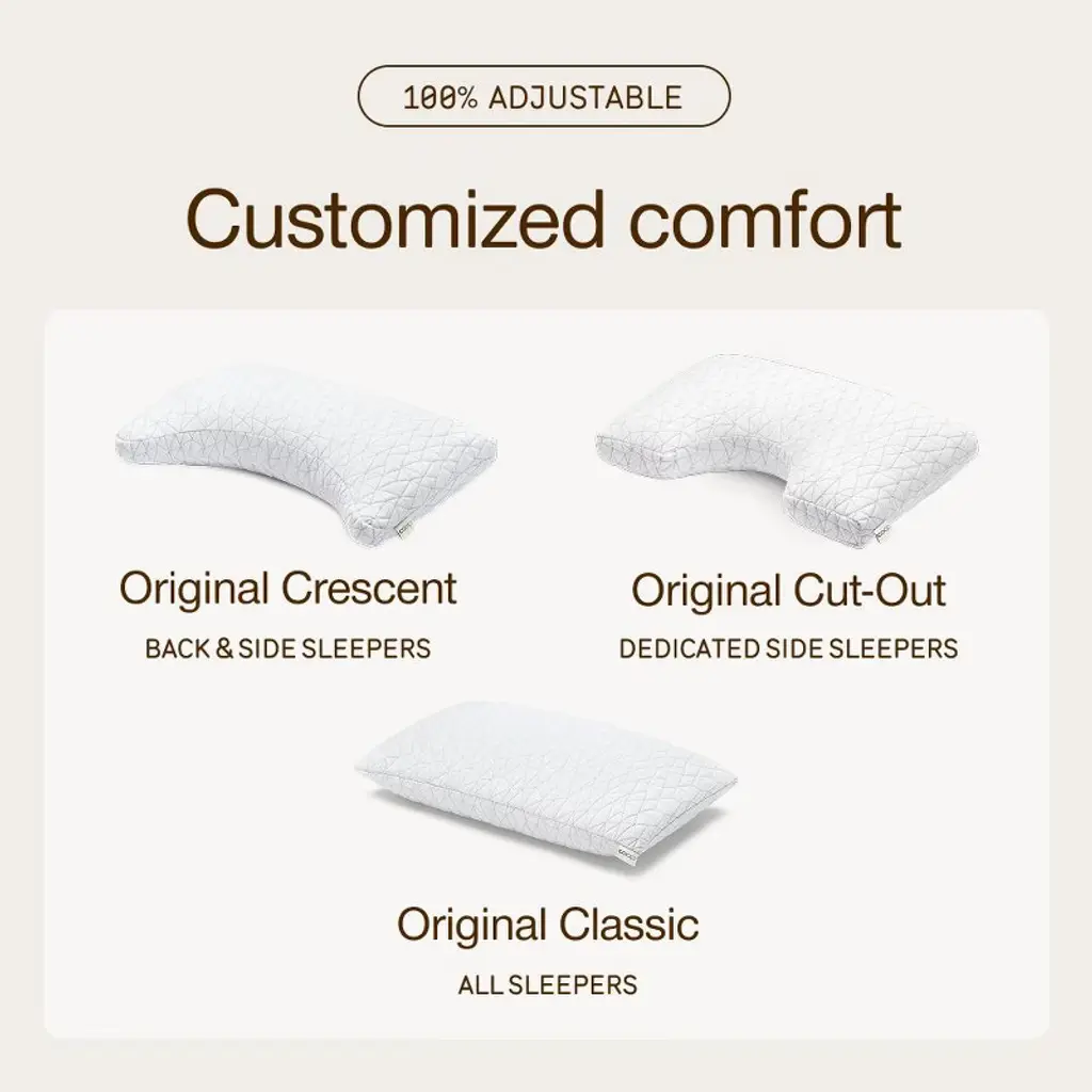 The Original Crescent Pillow is the perfect choice for side sleepers who also rotate to their backs. Ergonomically designed to provide superior comfort and support, this pillow is crafted from our legendary Oomph! memory foam and microfiber blend. Fully adjustable for personalized comfort, the Original Crescent Pillow offers the perfect blend of cushioning and support. You'll never need to worry about stiff necks or sore backs again - this pillow has you covered!
