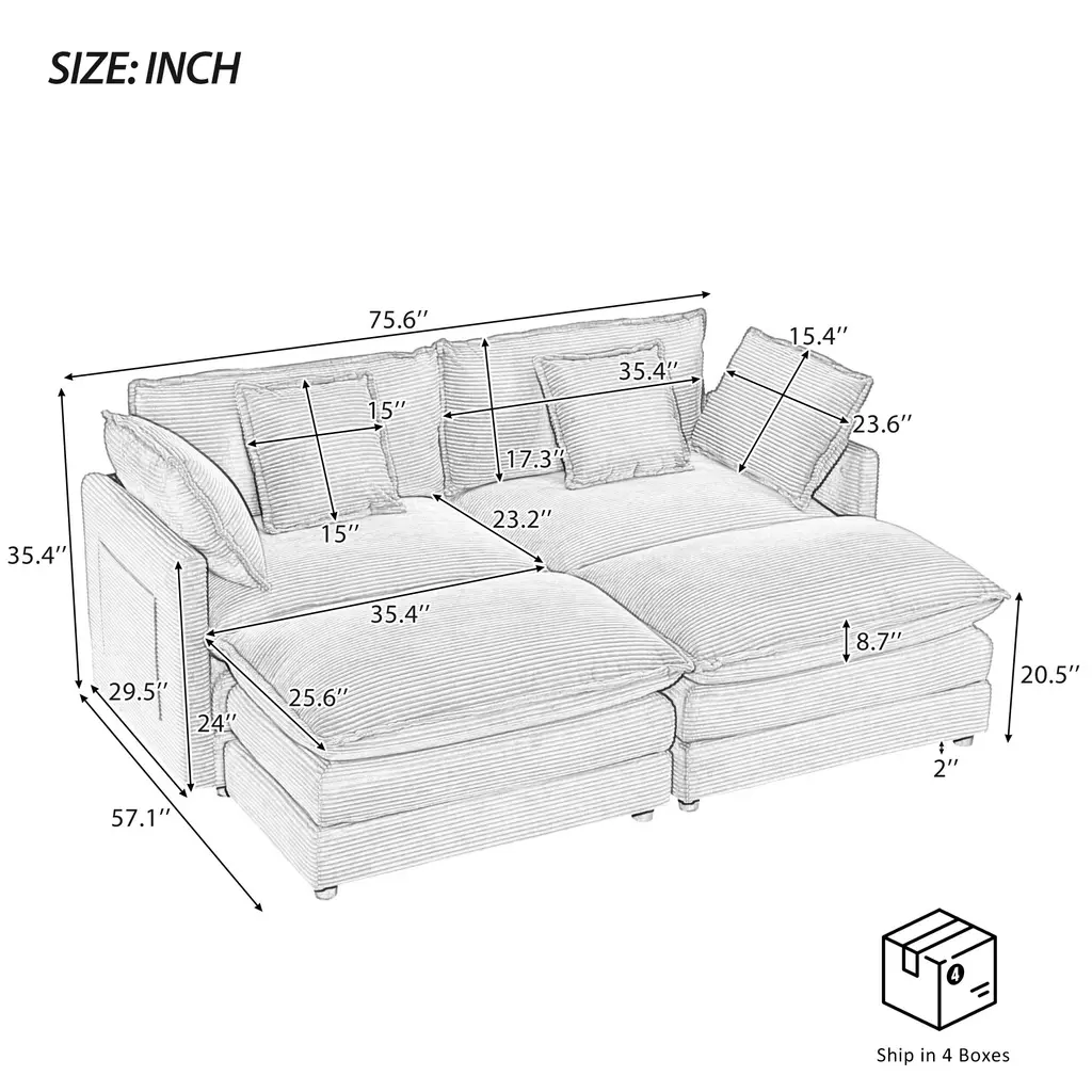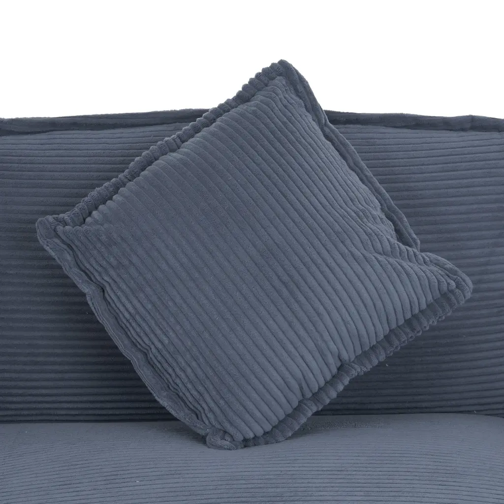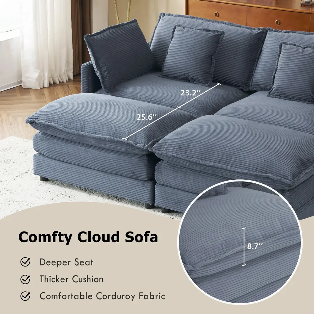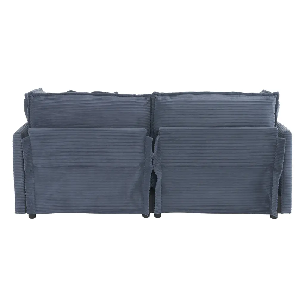 Corduroy Loveseat Set With Movable Ottoman 4 Seater Corner Sofa, Upholstered Deep-Seat Couch Wcushions And 4 Pillows Brown - Blue