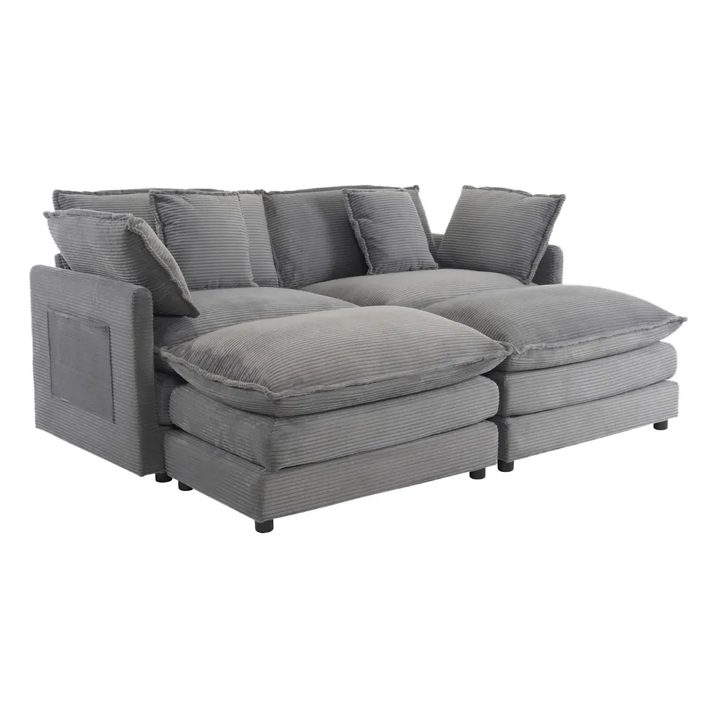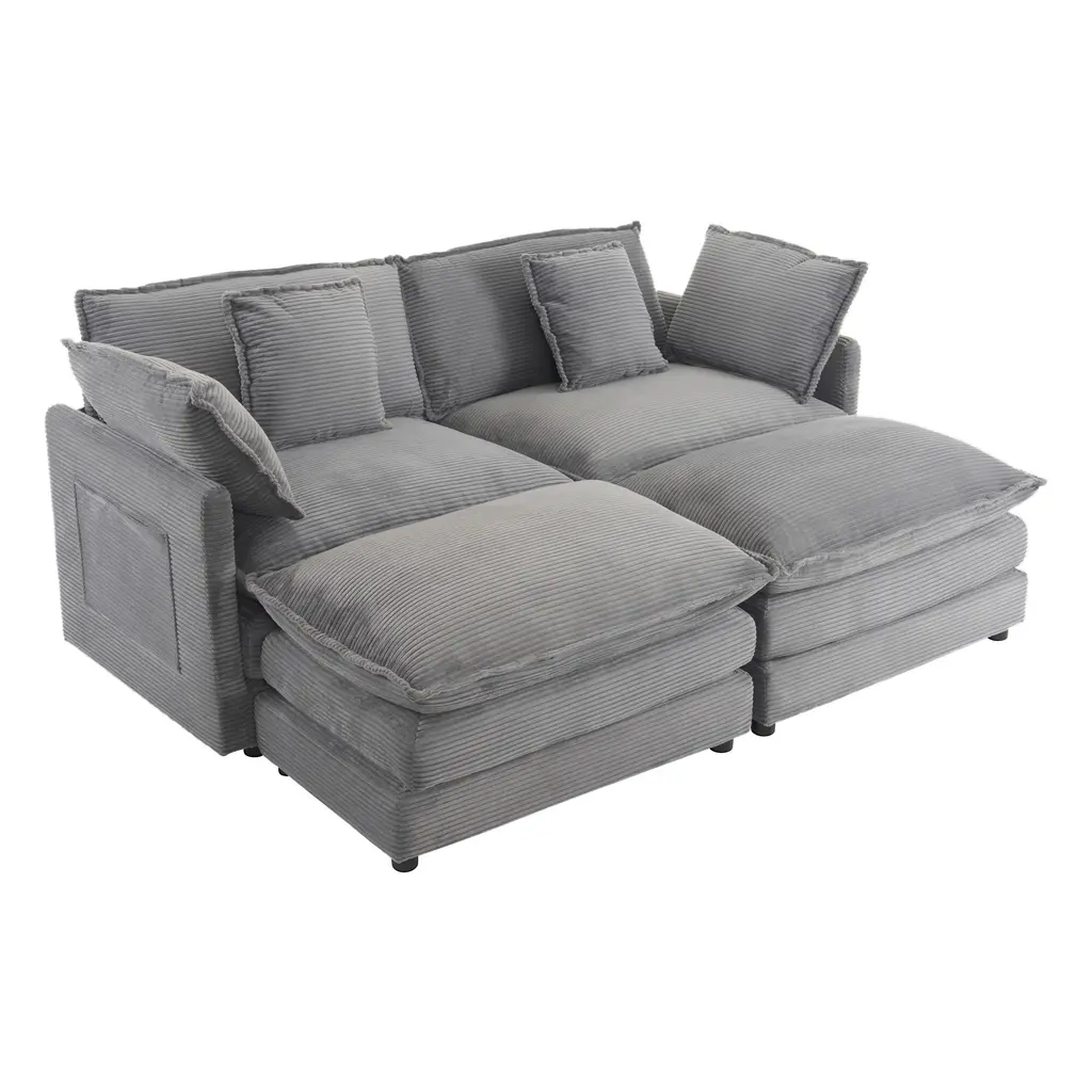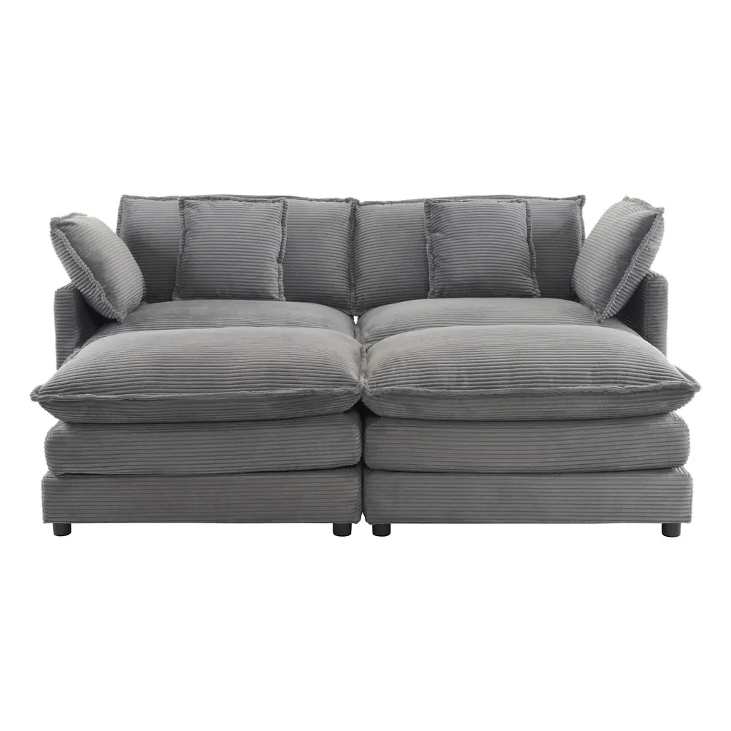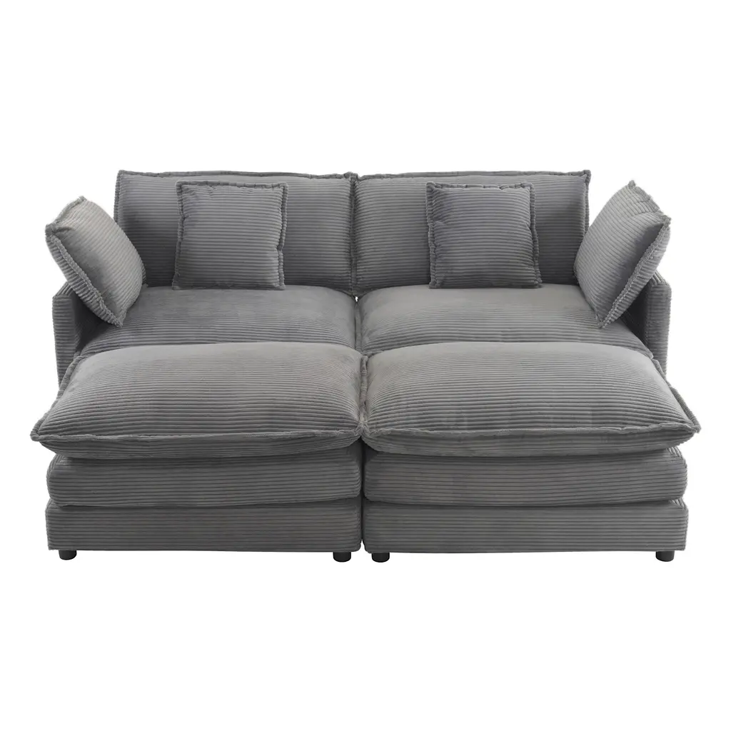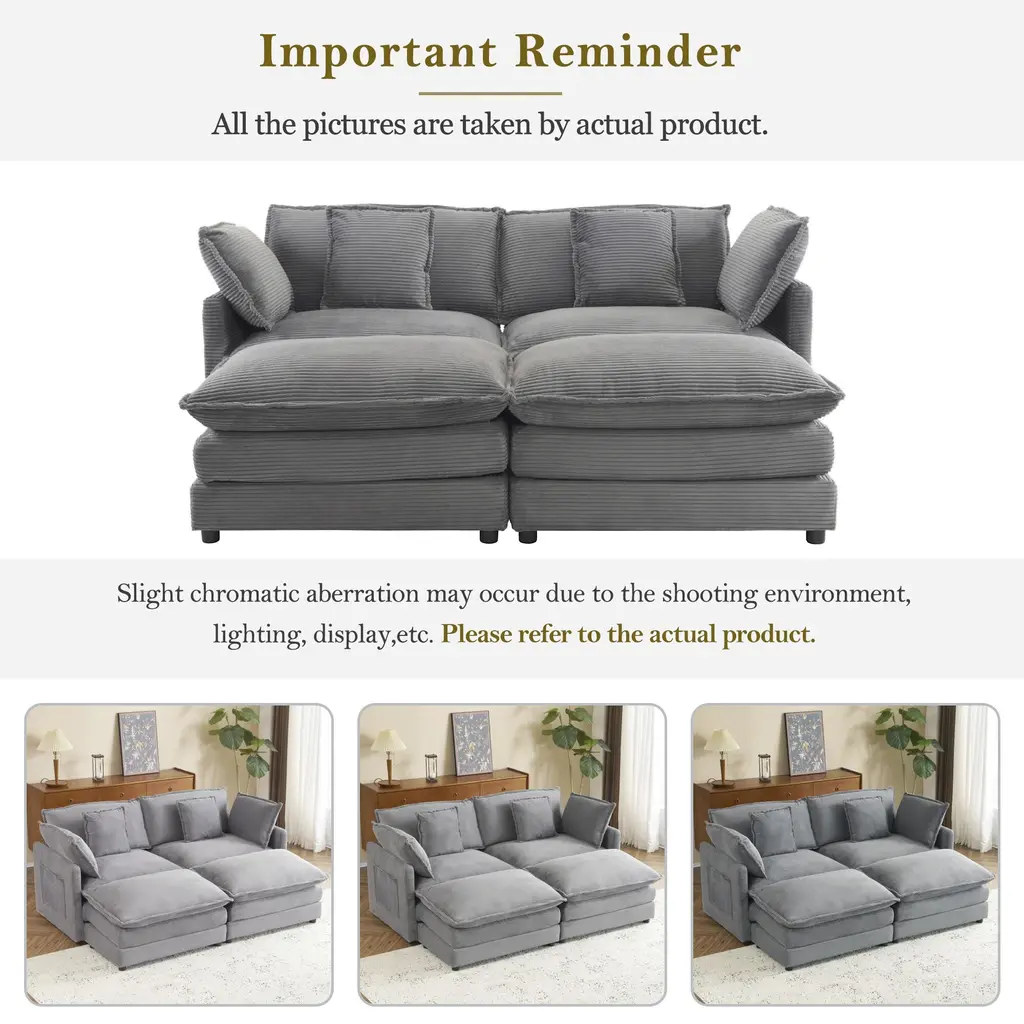 Corduroy Loveseat Set With Movable Ottoman 4 Seater Corner Sofa, Upholstered Deep-Seat Couch Wcushions And 4 Pillows Brown - Dark Grey
