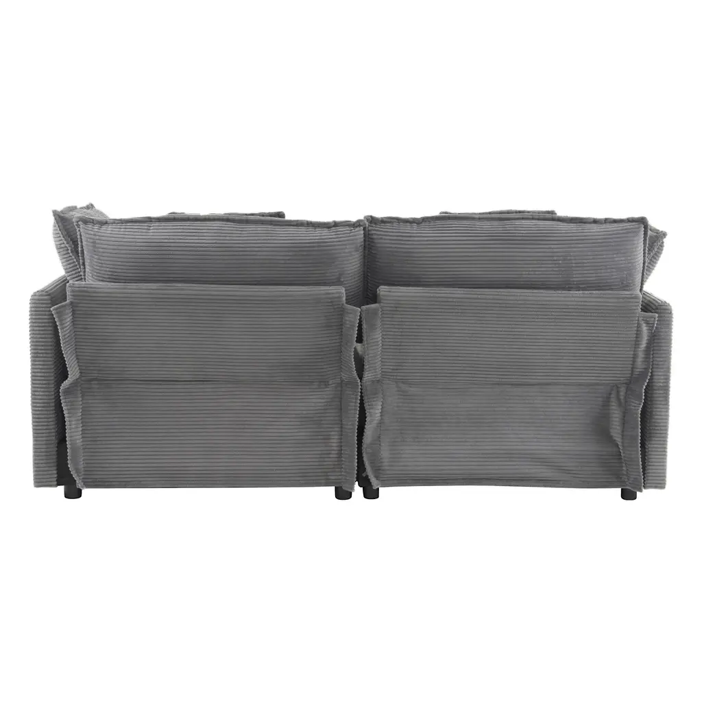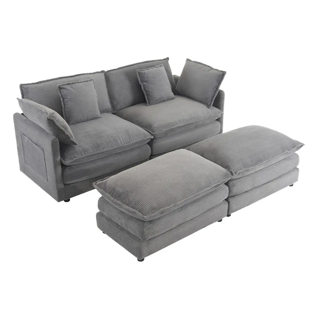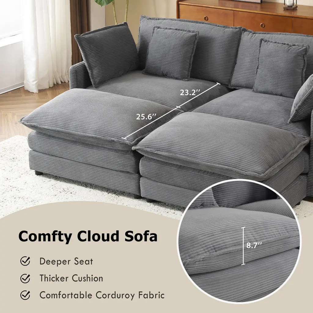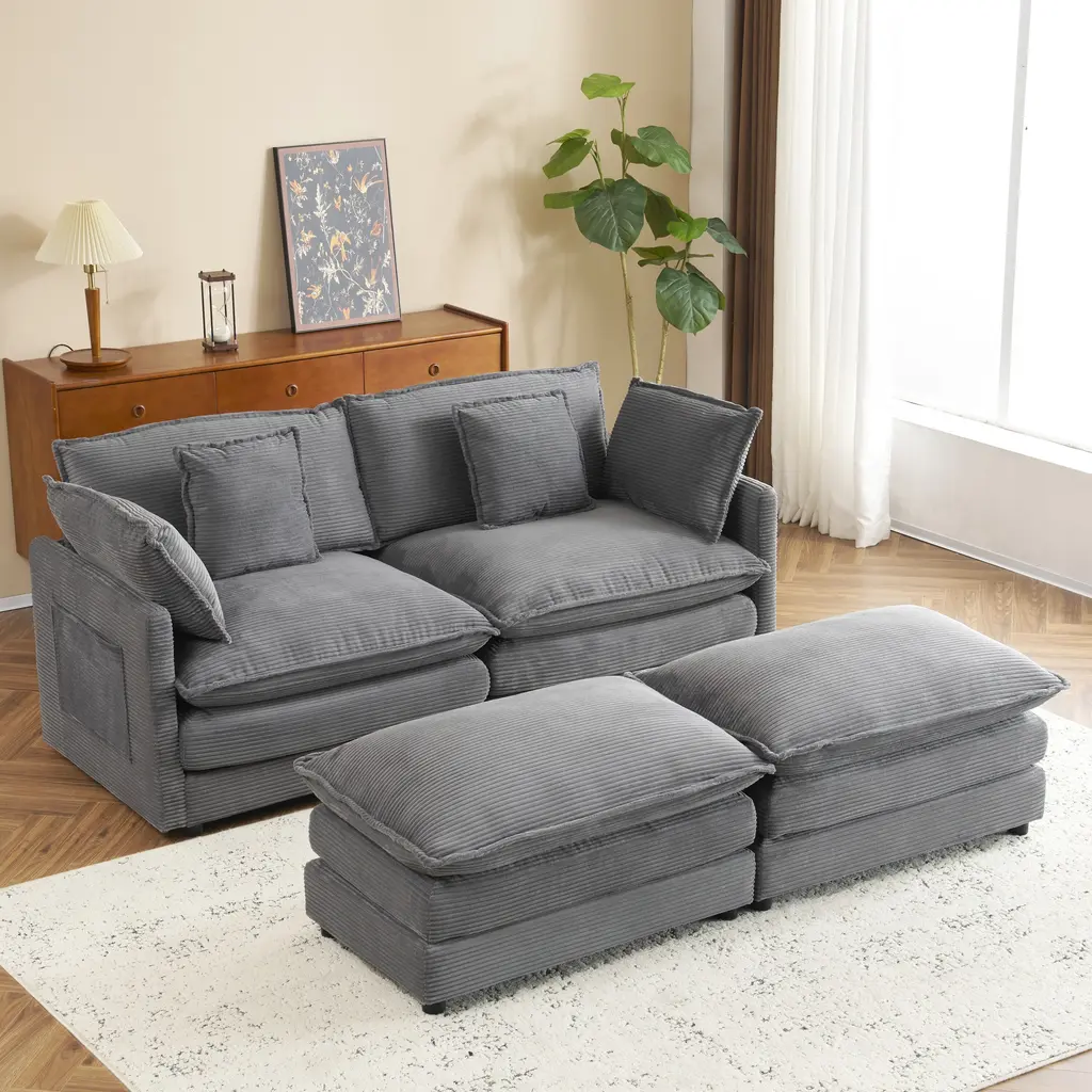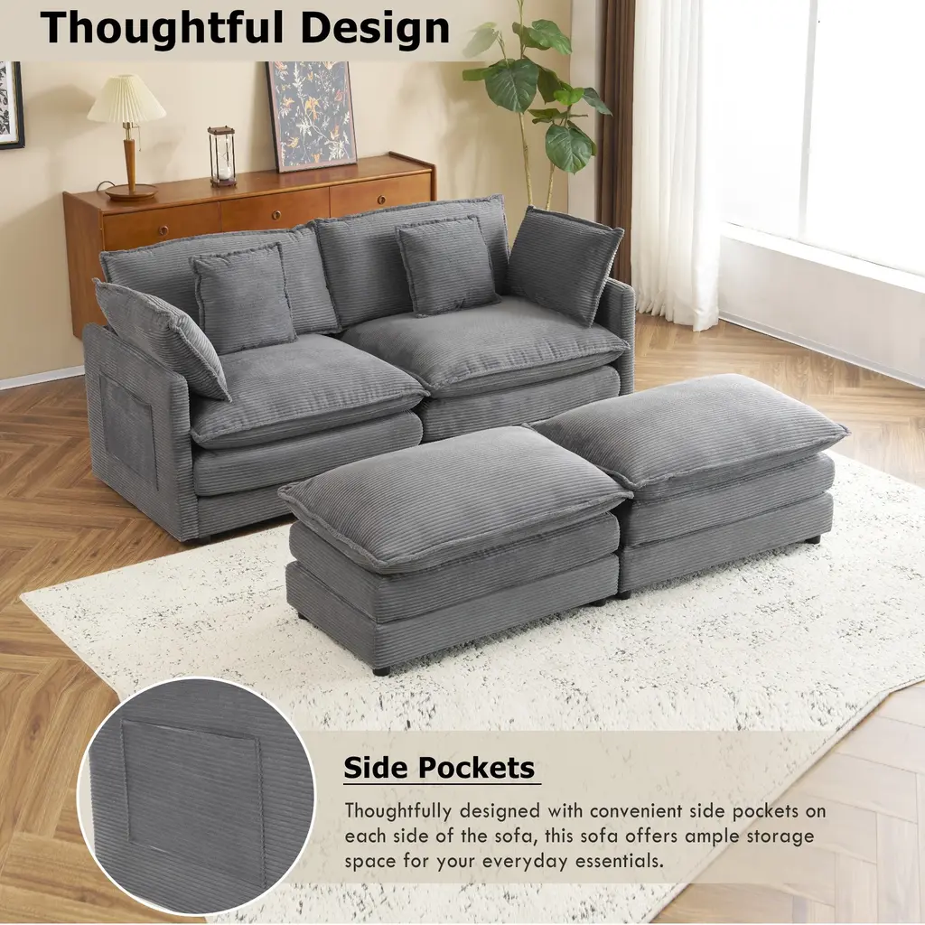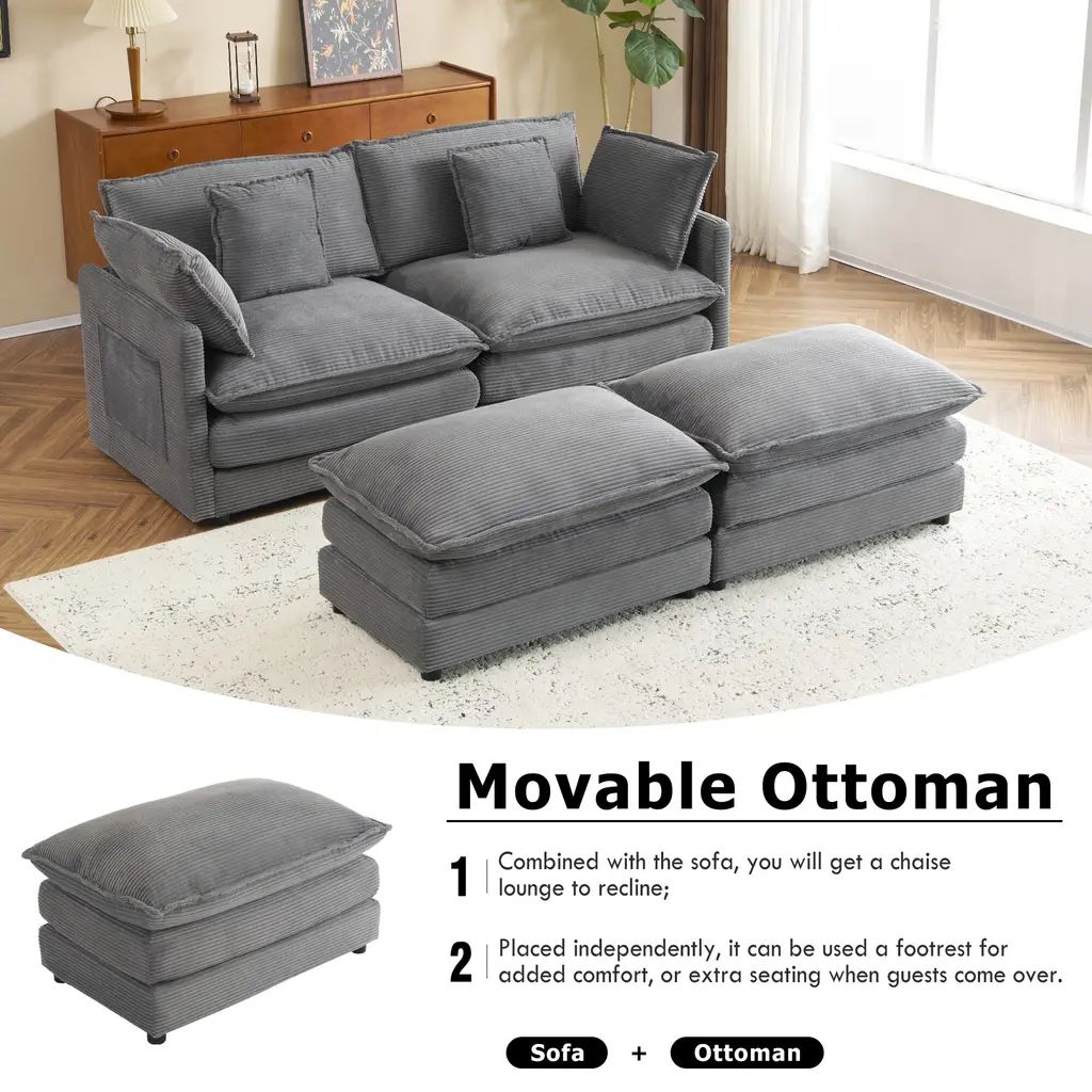Corduroy Loveseat Set With Movable Ottoman 4 Seater Corner Sofa, Upholstered Deep-Seat Couch Wcushions And 4 Pillows Brown - Dark Grey